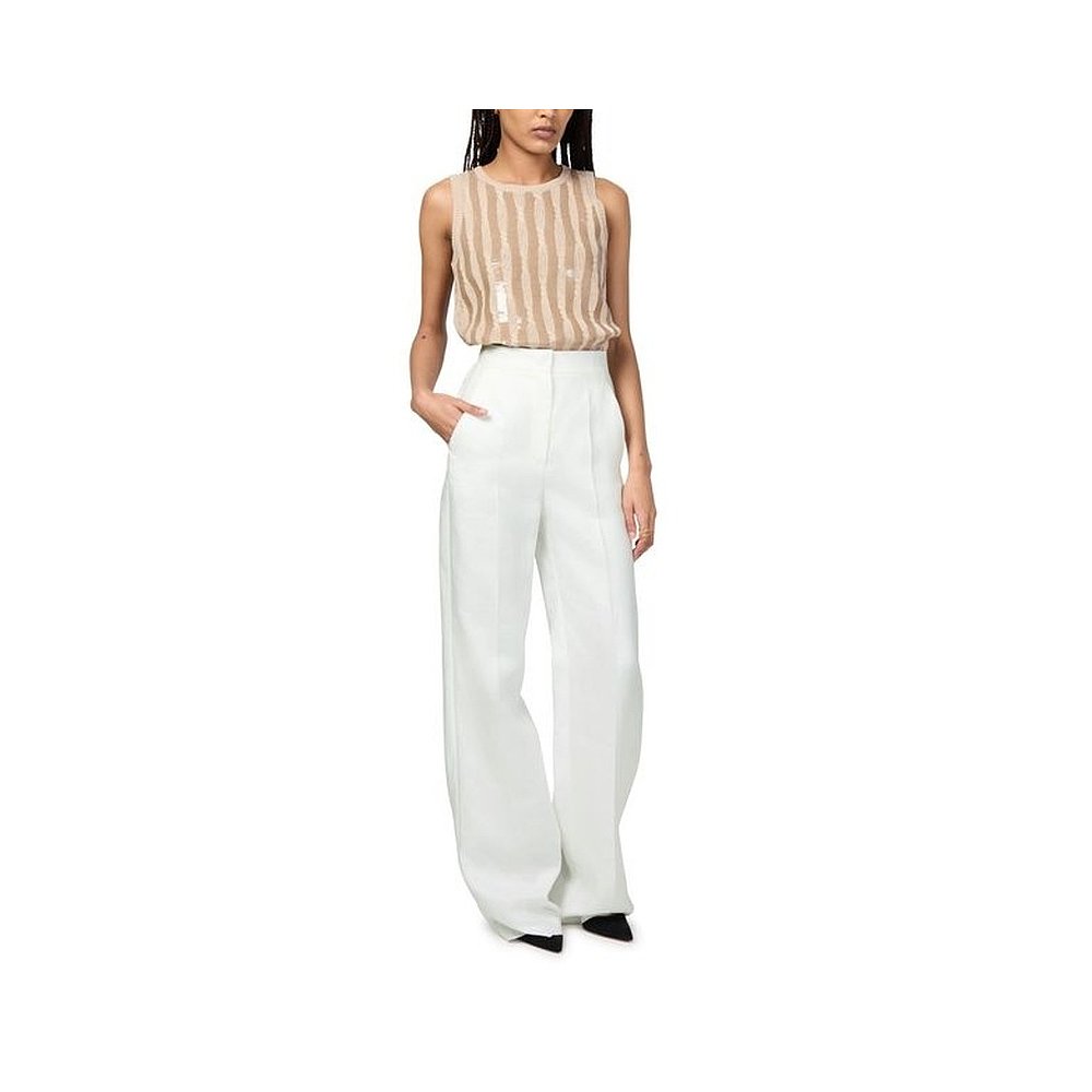 自营欧洲直邮MAXMARA麦丝玛拉 Arda女士丝缎色亚麻拉链高腰直筒长