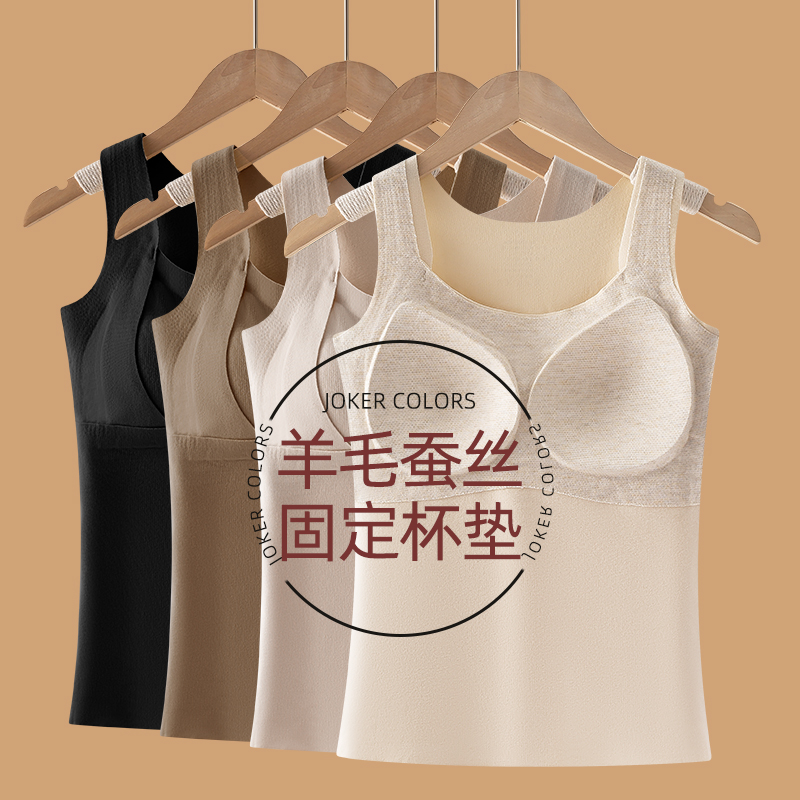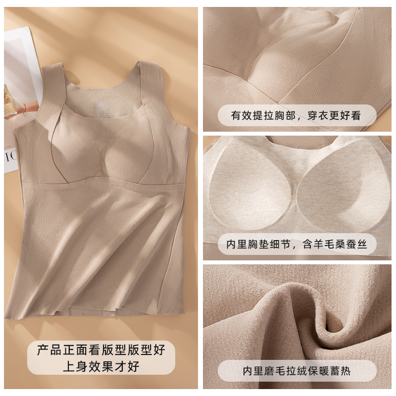 德绒保暖吊带背心女2025新款 秋冬内搭加绒发热无痕带胸垫一体内衣