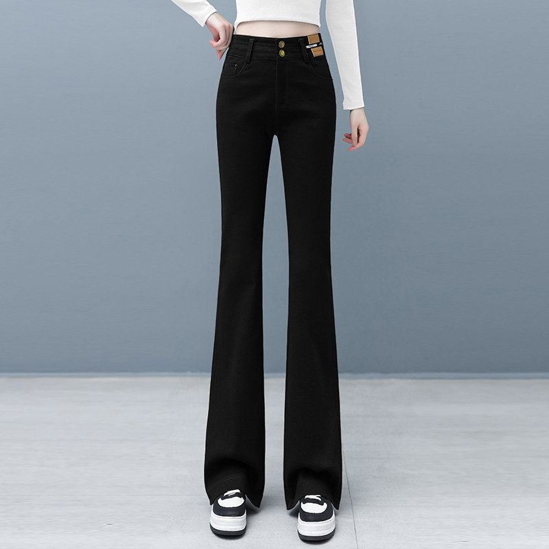 女2025秋冬季 子休闲女裤 新款 喇叭裤 高腰加绒加厚马蹄裤 微喇牛仔裤