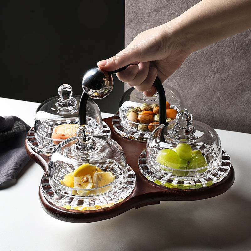中式 托盘精致下午茶餐具美容院小食点心拼盘酒店欢迎水果盘带盖子