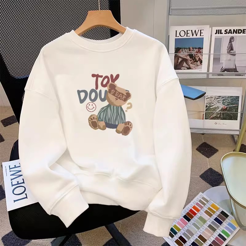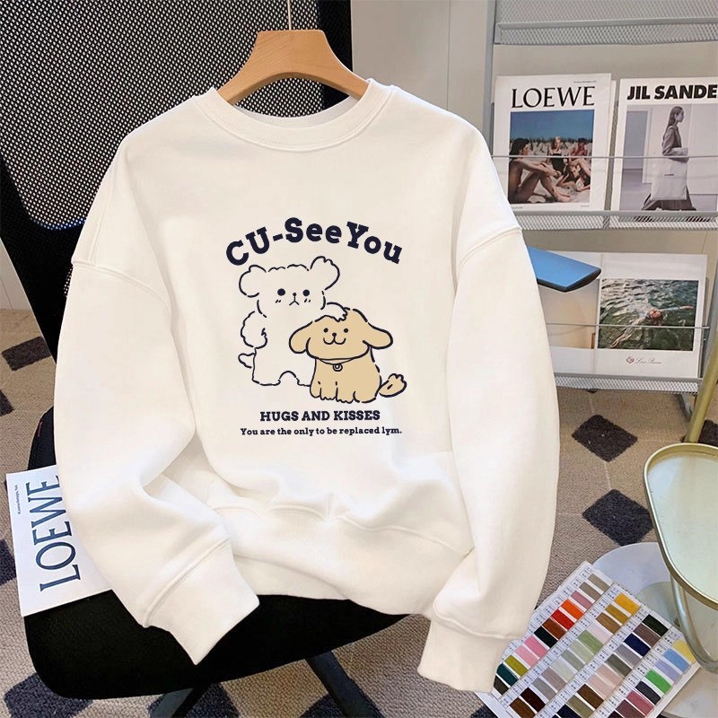 外套秋冬美式 中长款 加厚加绒上衣 宽松大码 灰色圆领卫衣女2025新款
