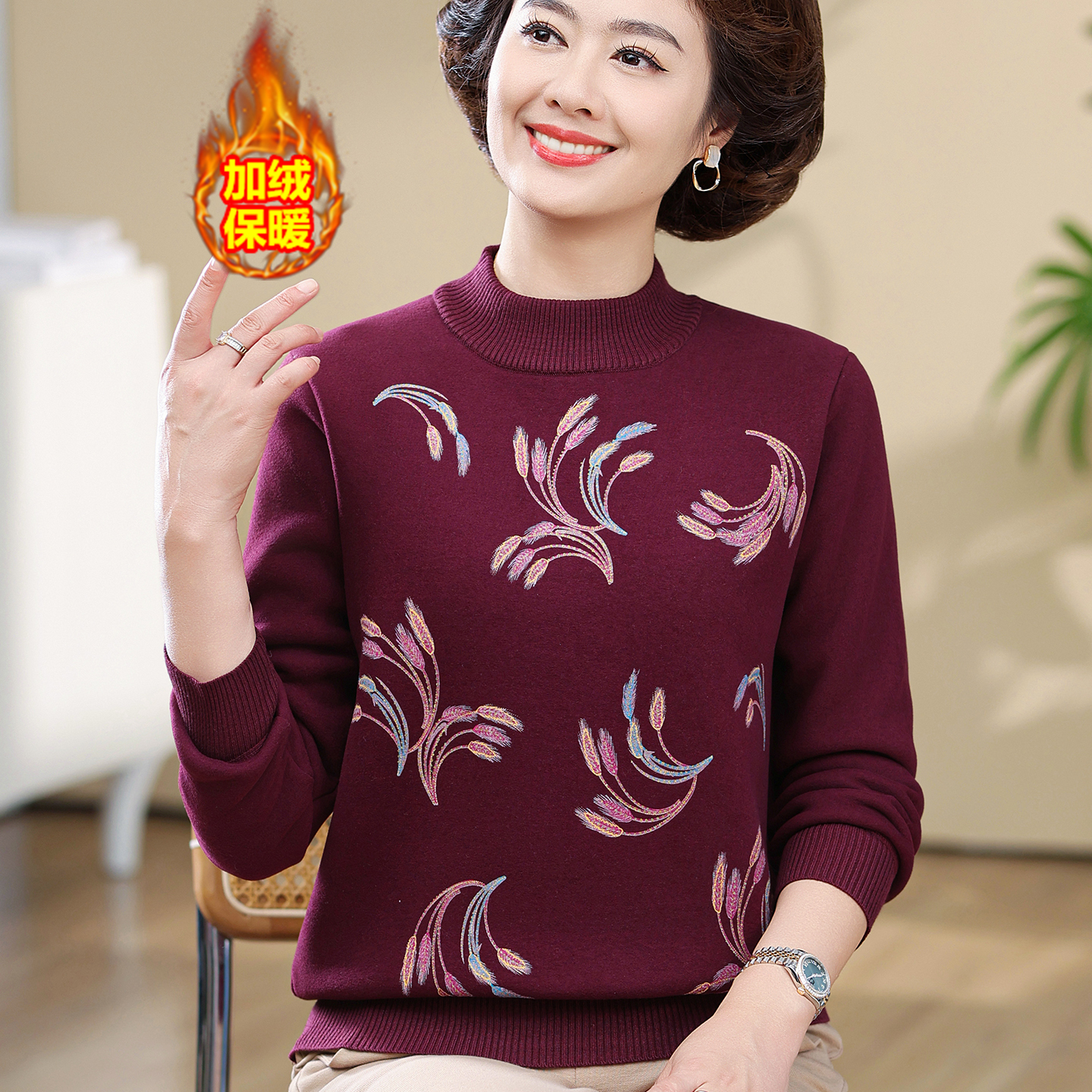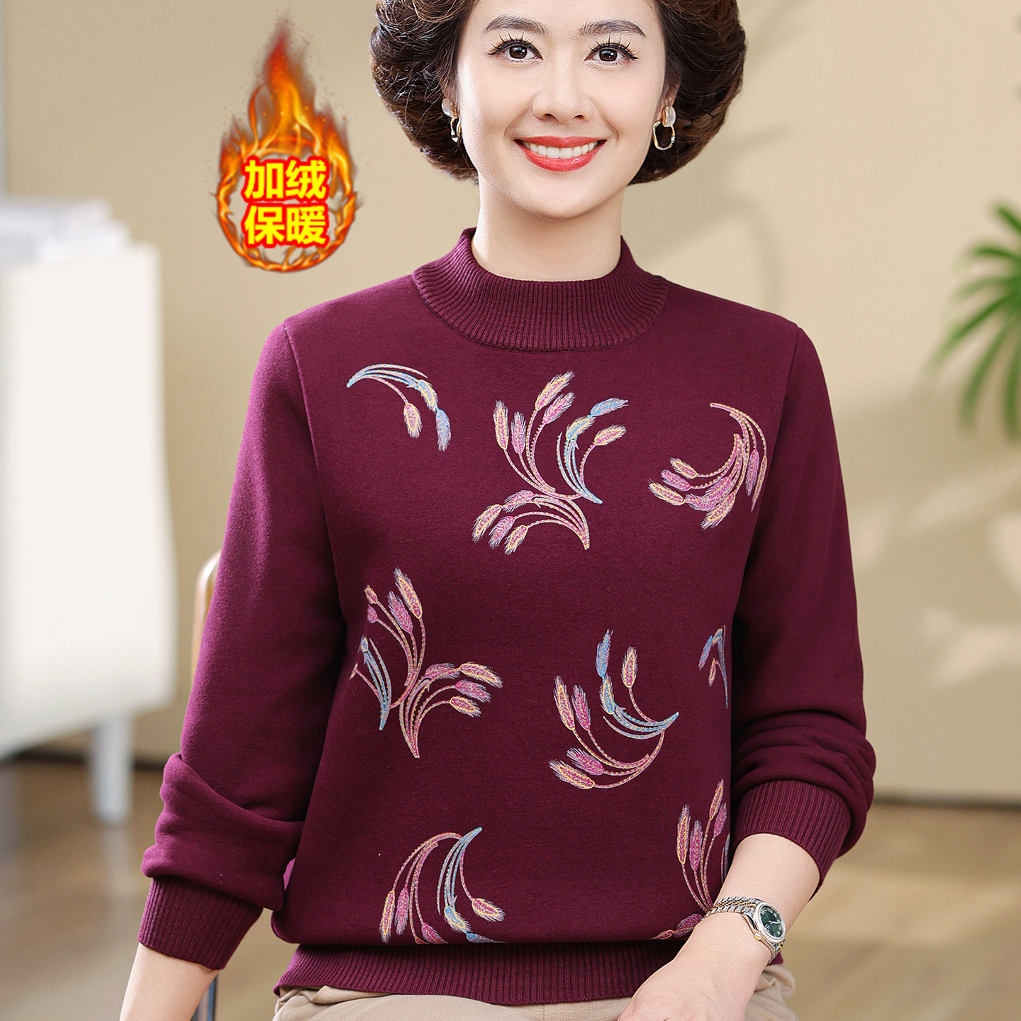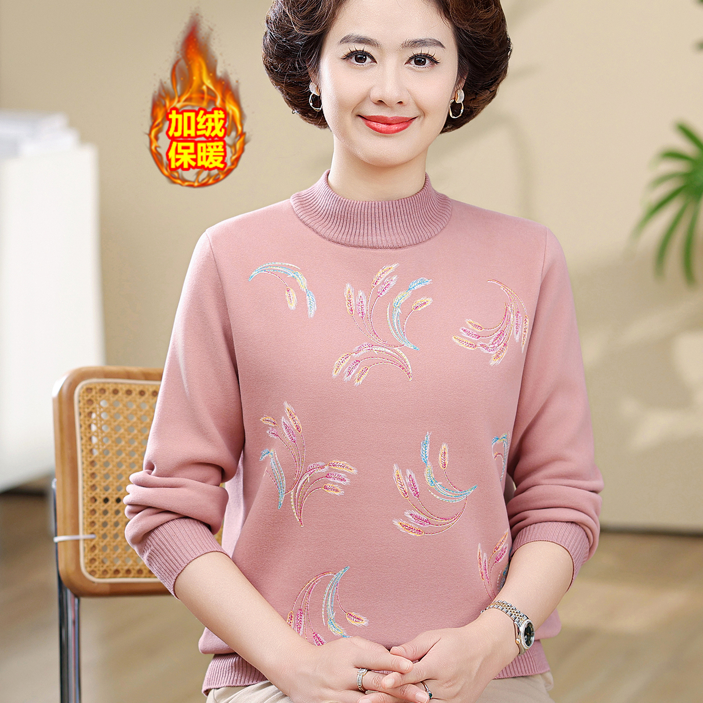 中老年人女加绒加厚保暖上衣套装 妈妈秋冬装 毛衣洋气一体绒打底衫