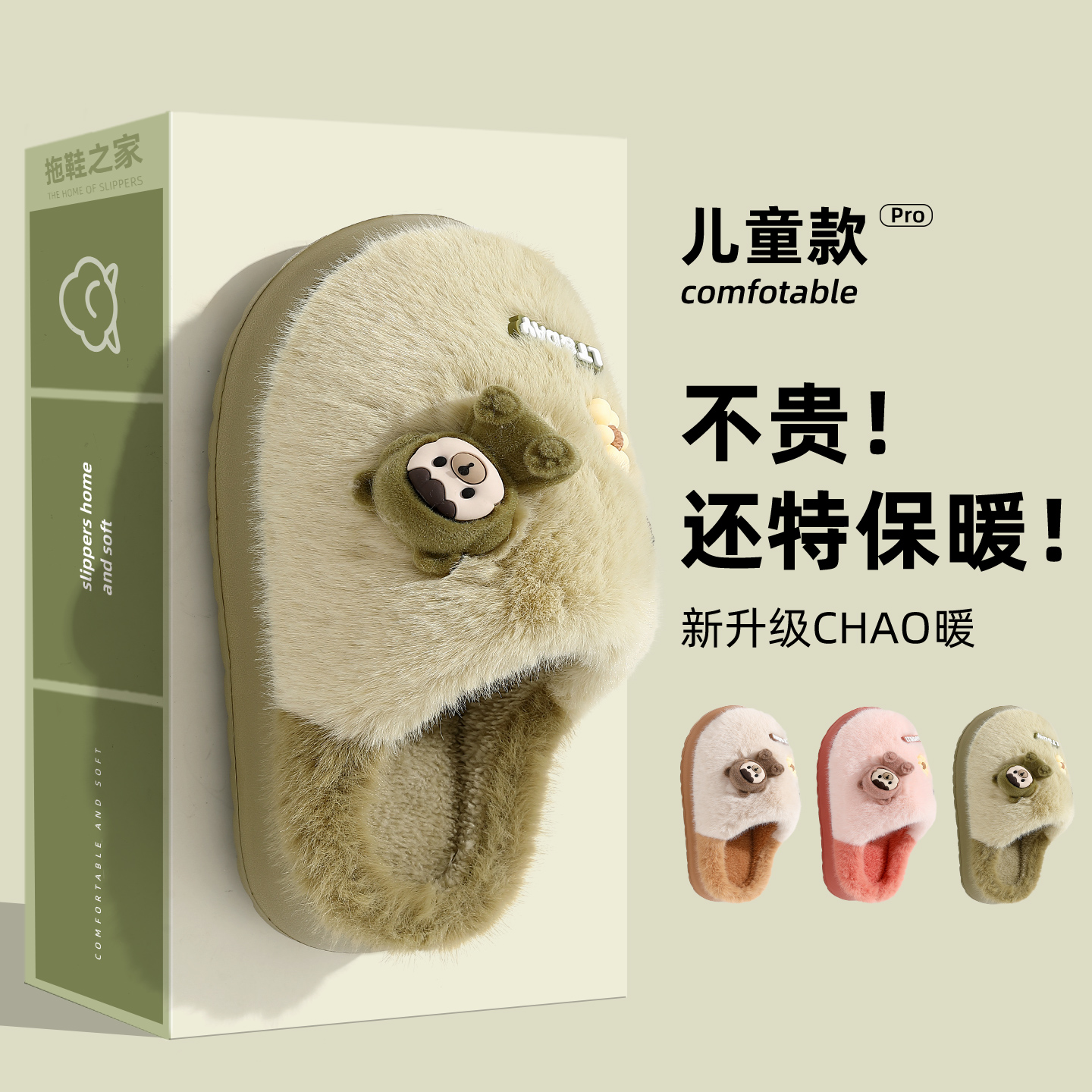 毛绒棉鞋 室内家居防滑保暖防臭亲子宝宝儿童男款 女士秋冬季 棉拖鞋
