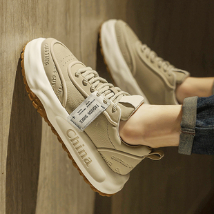 学生休闲超火轻奢白色潮鞋 运动软底潮牌百搭小白板鞋 秋季 真皮男鞋