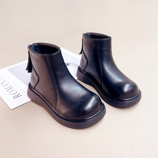 儿童短靴单靴加绒黑色马丁靴小公主靴 新款 女童靴子童鞋 2025秋冬季
