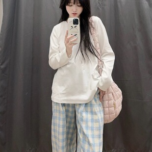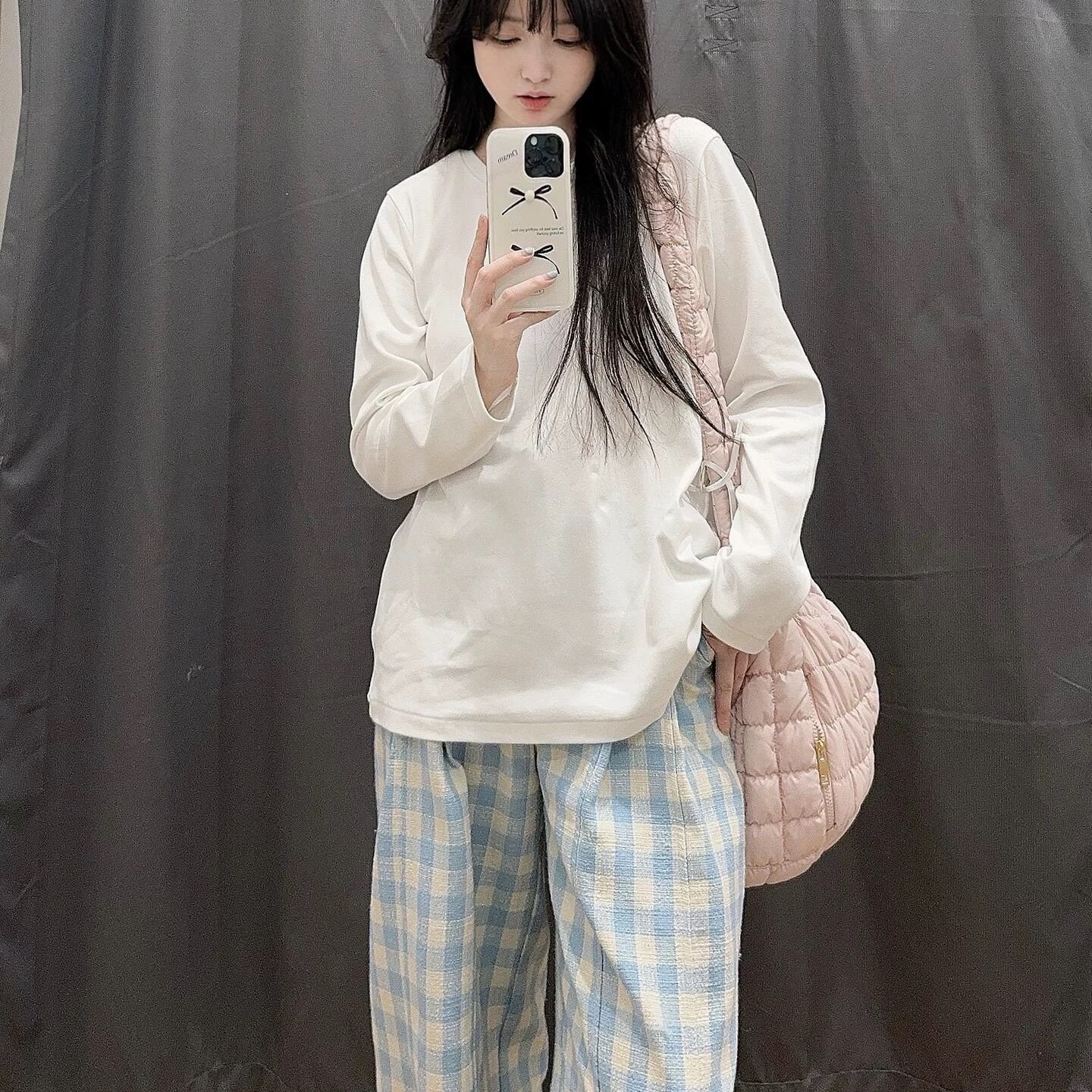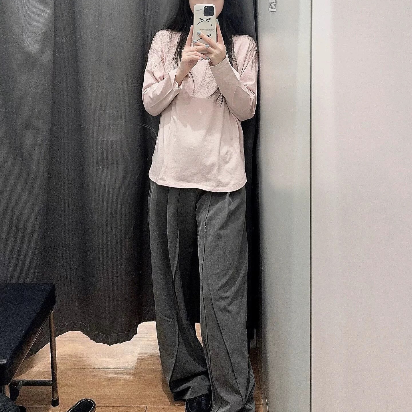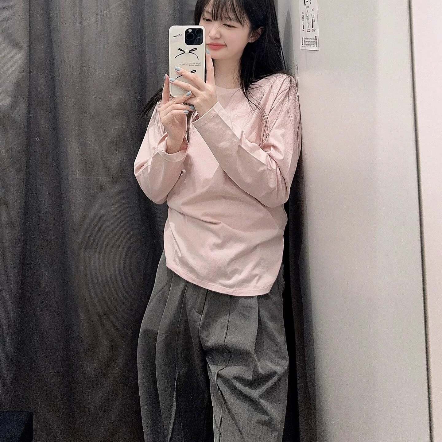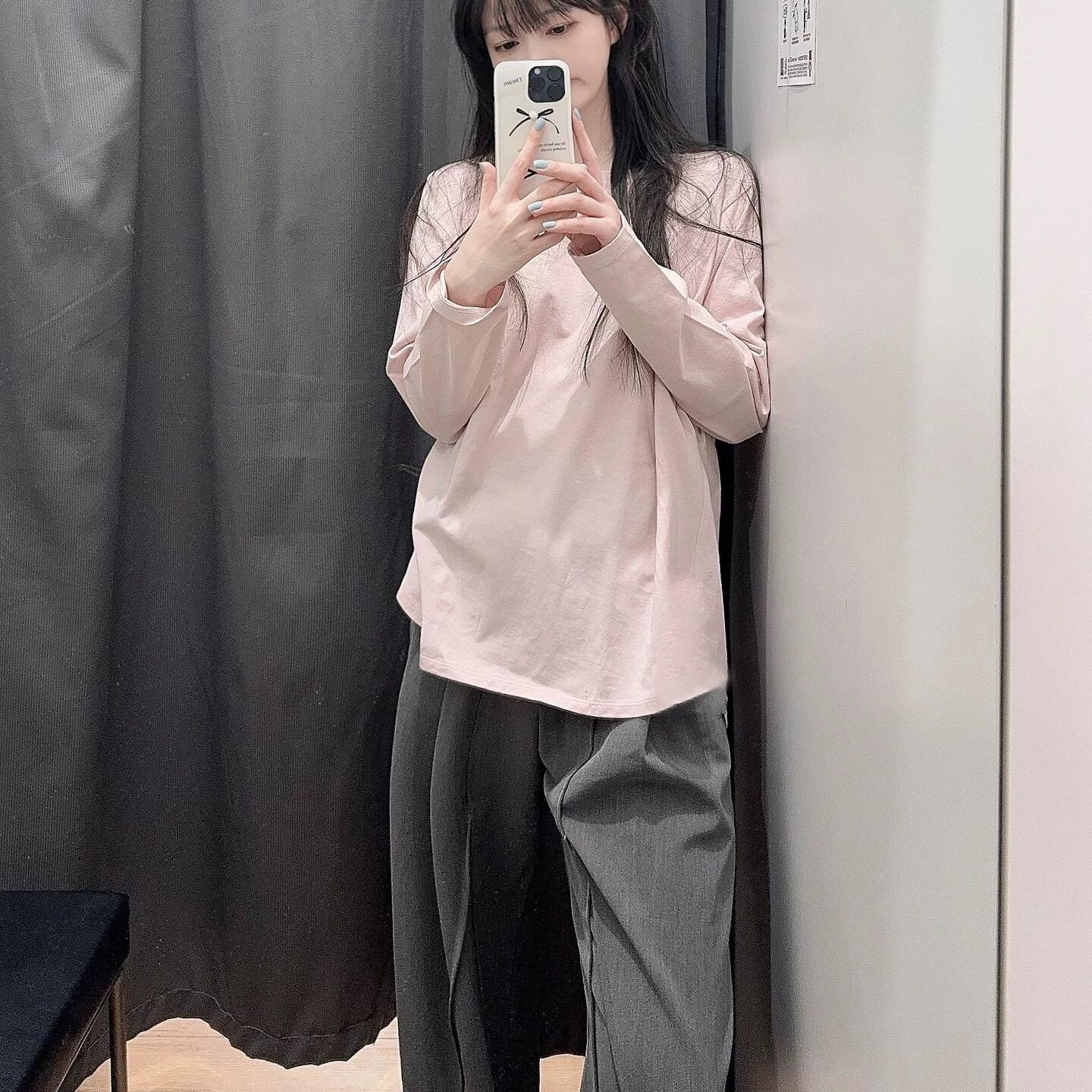 2025早秋新款 正肩卫衣内搭打底衫 上衣 T恤女宽松薄款 粉色纯棉长袖