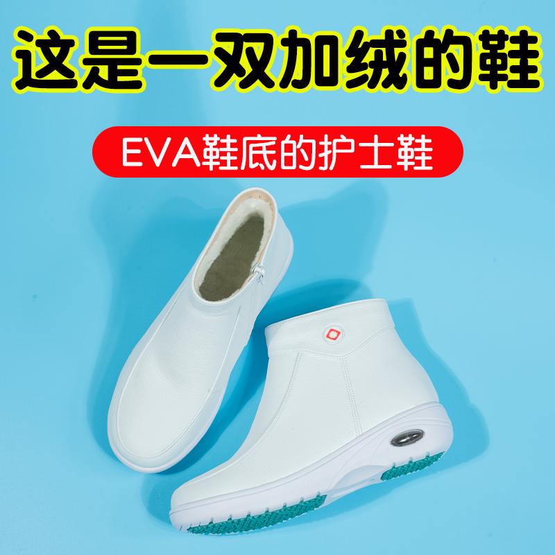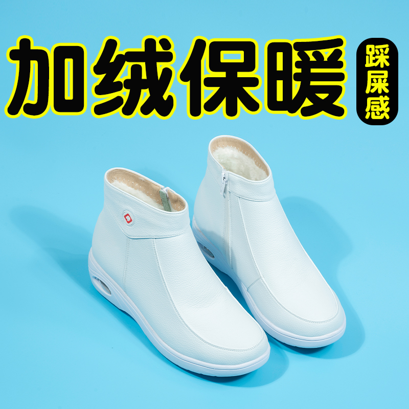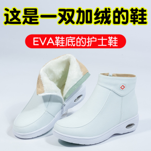 秋冬季 棉鞋 靴不累脚冬天防滑厚底 女软底白色冬款 加绒保暖护士鞋