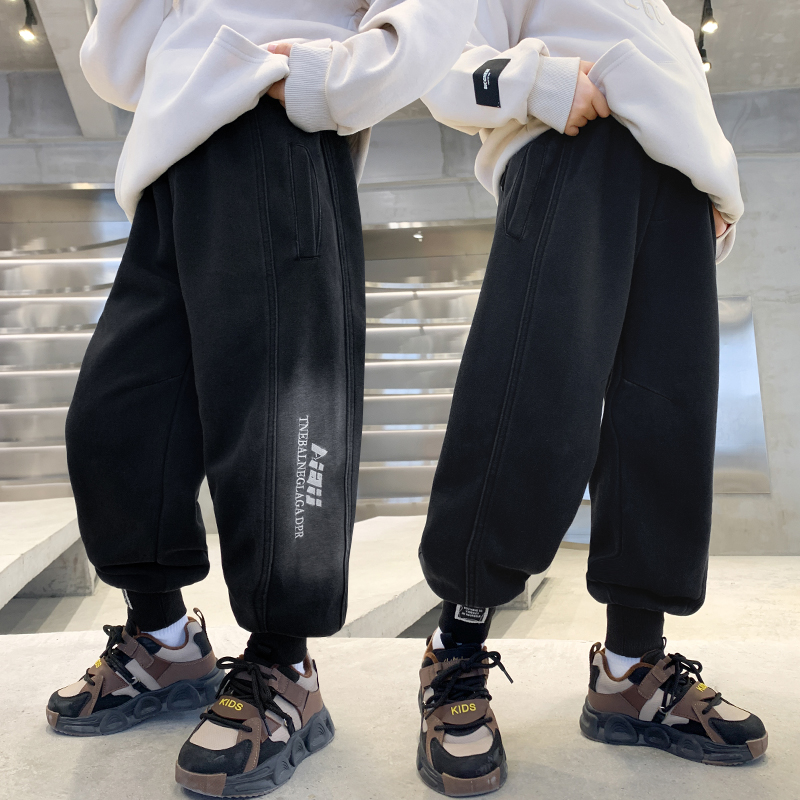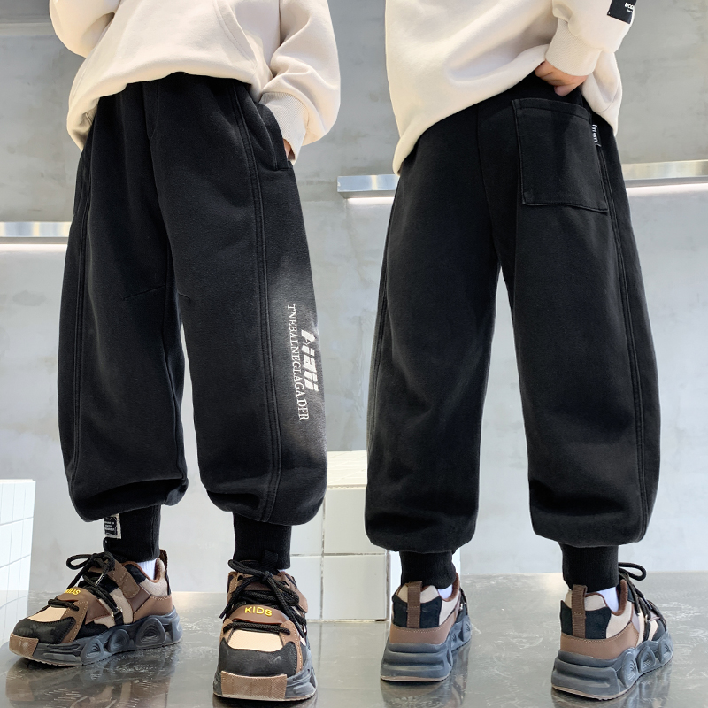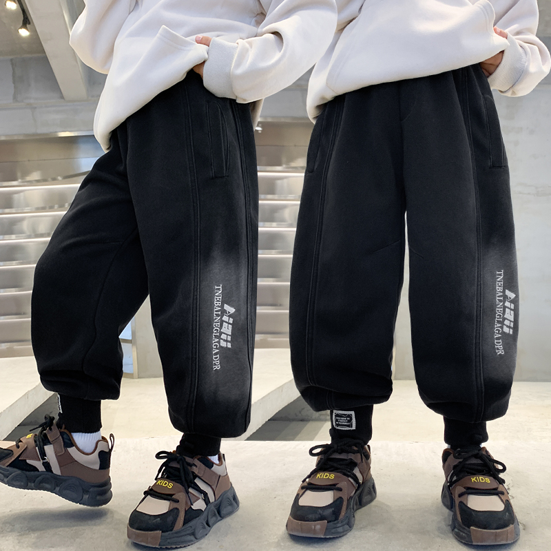 冬装 儿童一体绒洋气运动裤 男孩帅气卫裤 冬季 子 男童长裤 裤 2025新款