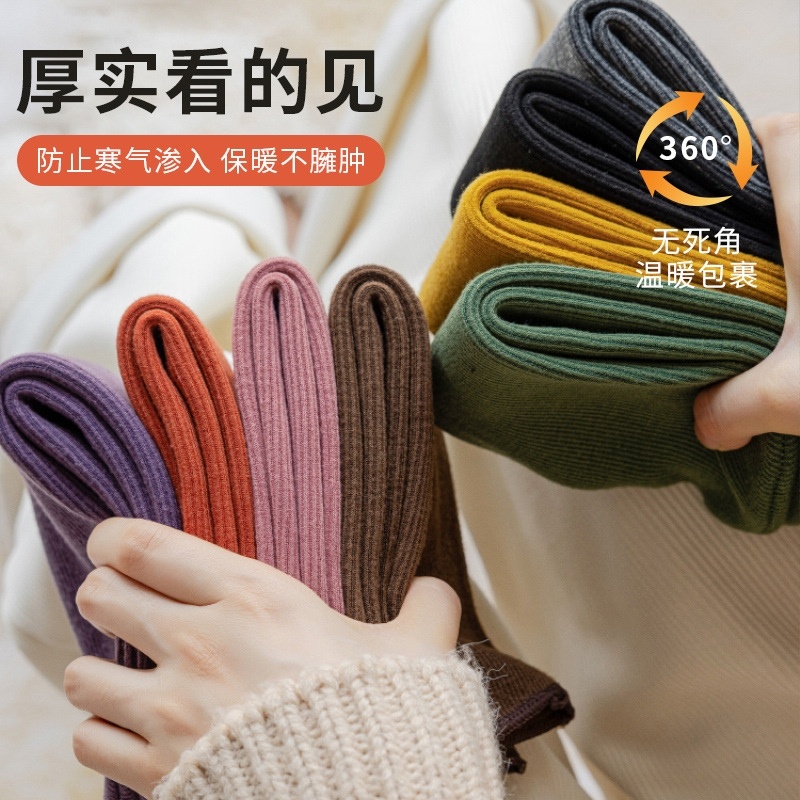 毛绒毛圈超厚冬天袜子女加绒加厚长筒保暖袜秋冬季 高筒长袜黑色 款