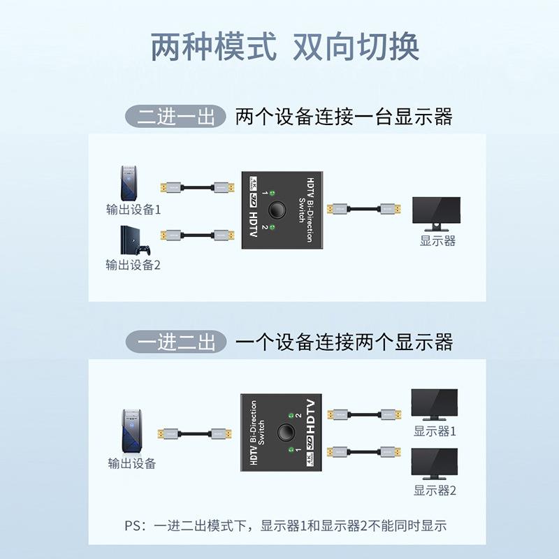 hdmi切换器一分二分线器高清电脑音视频双向转换4k屏幕一进二出