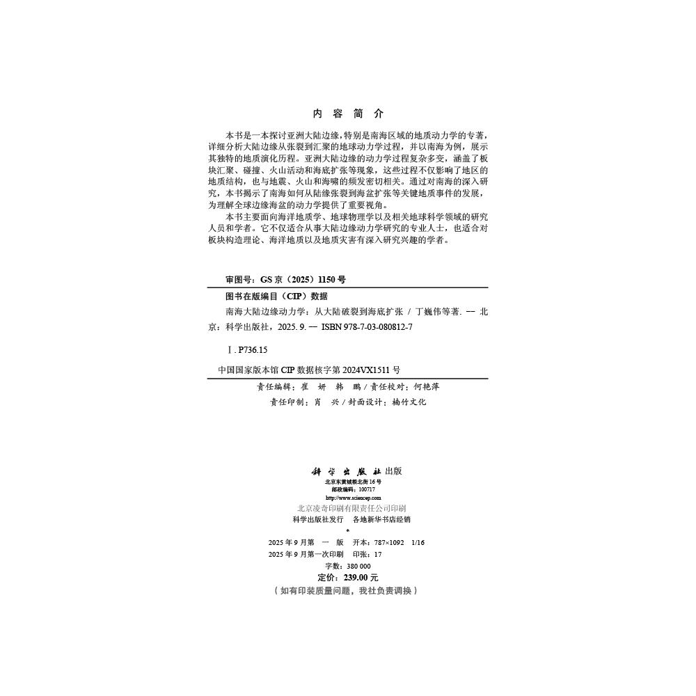 南海大陆边缘动力学——从大陆破裂到海底扩张 9787030808127 丁巍伟等