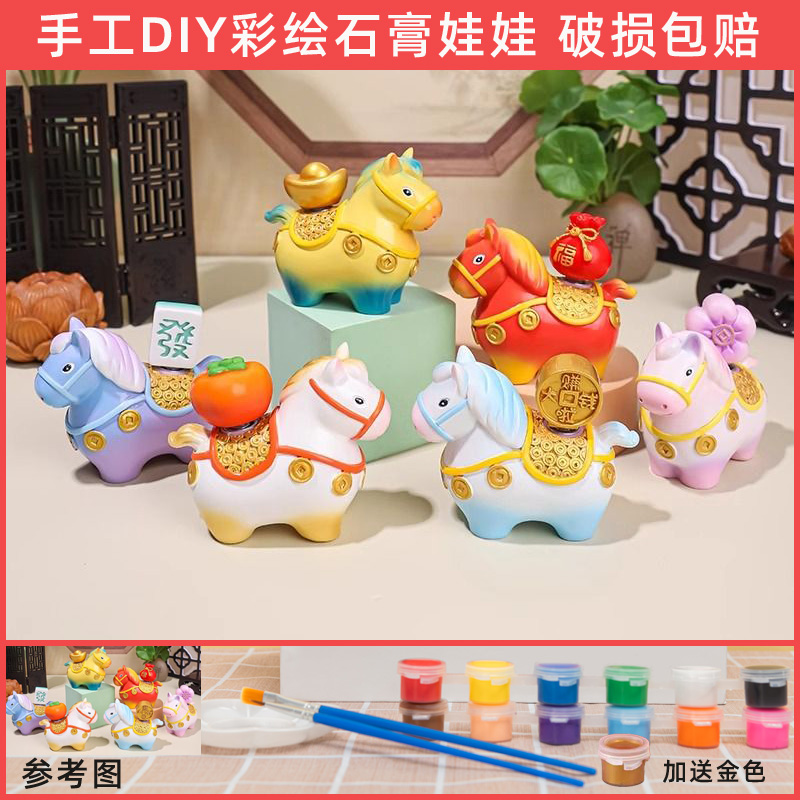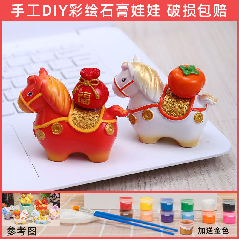马年新年DIY石膏彩绘可爱小胖马玩偶生肖马吉祥物招财送礼摆件