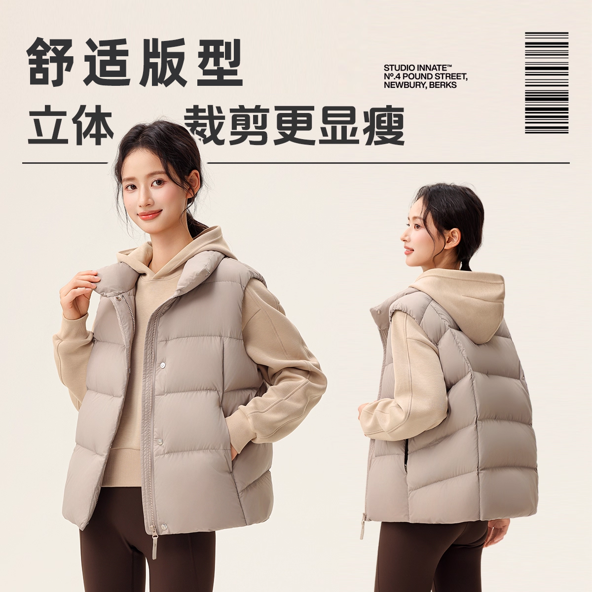 短款 冬季 乐町无领宽松轻薄羽绒服女装 简约好穿圆领羽绒保暖外 预