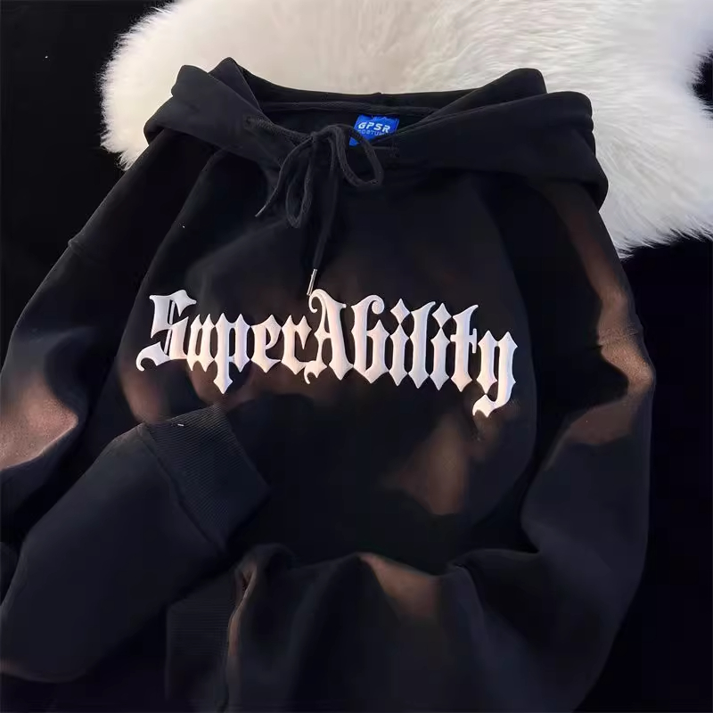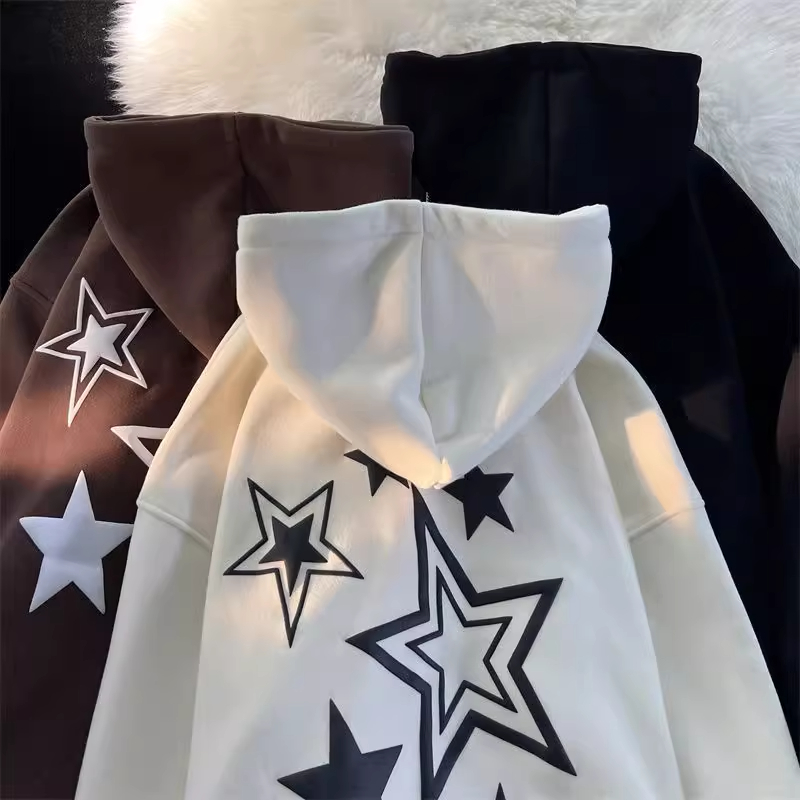 中大童美式 外套 星星印花连帽卫衣男女童秋冬加绒加厚儿童宽松帽衫