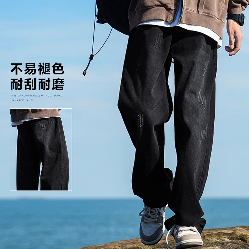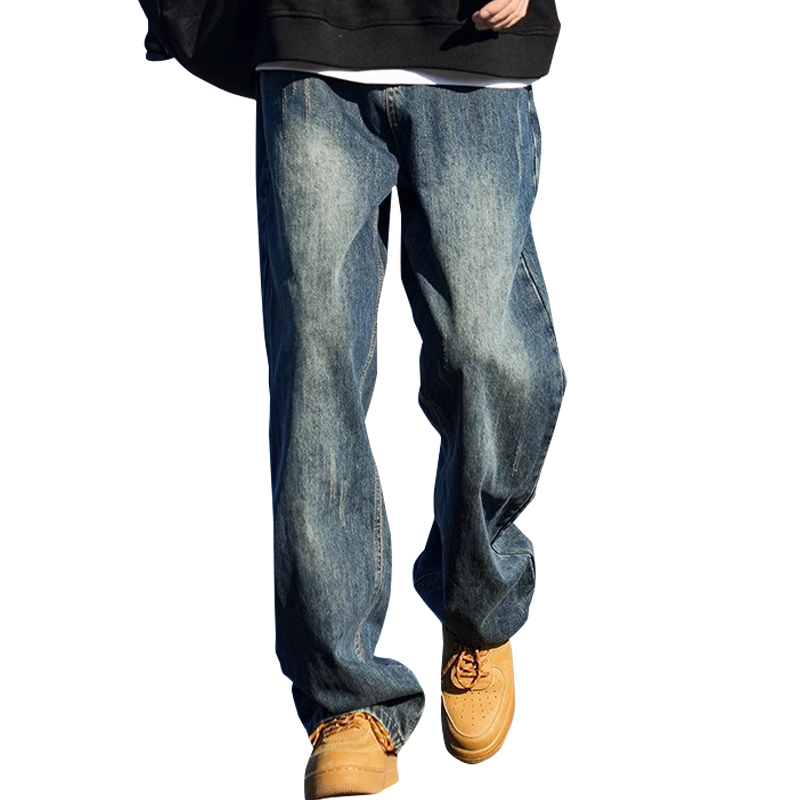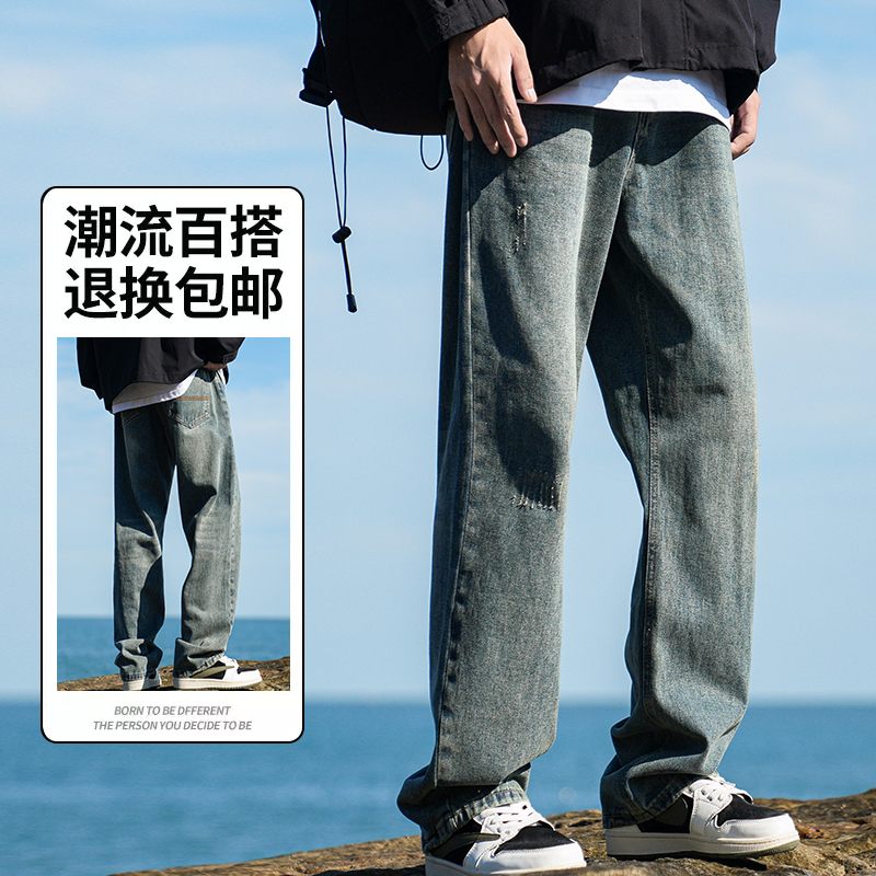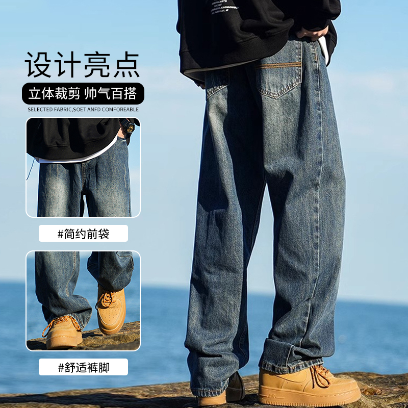男美式 子百搭宽松阔腿长裤 vibe高街秋季 直筒裤 2025新款 罗蒙牛仔裤