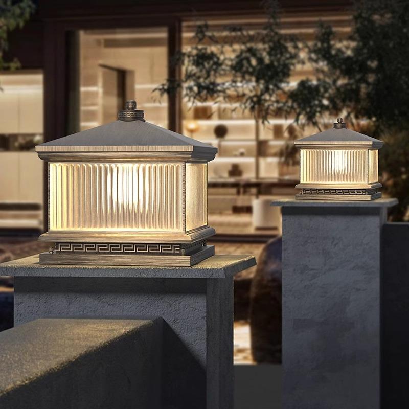 全铜太阳能柱头灯家用院子柱子灯别墅围墙灯户外防水庭院灯大门灯
