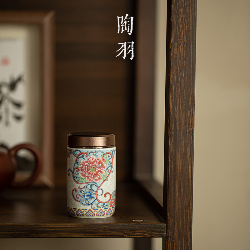 仿古珐琅彩掐丝牡丹小茶叶罐高颜值密封罐小号储存罐防潮功夫茶具