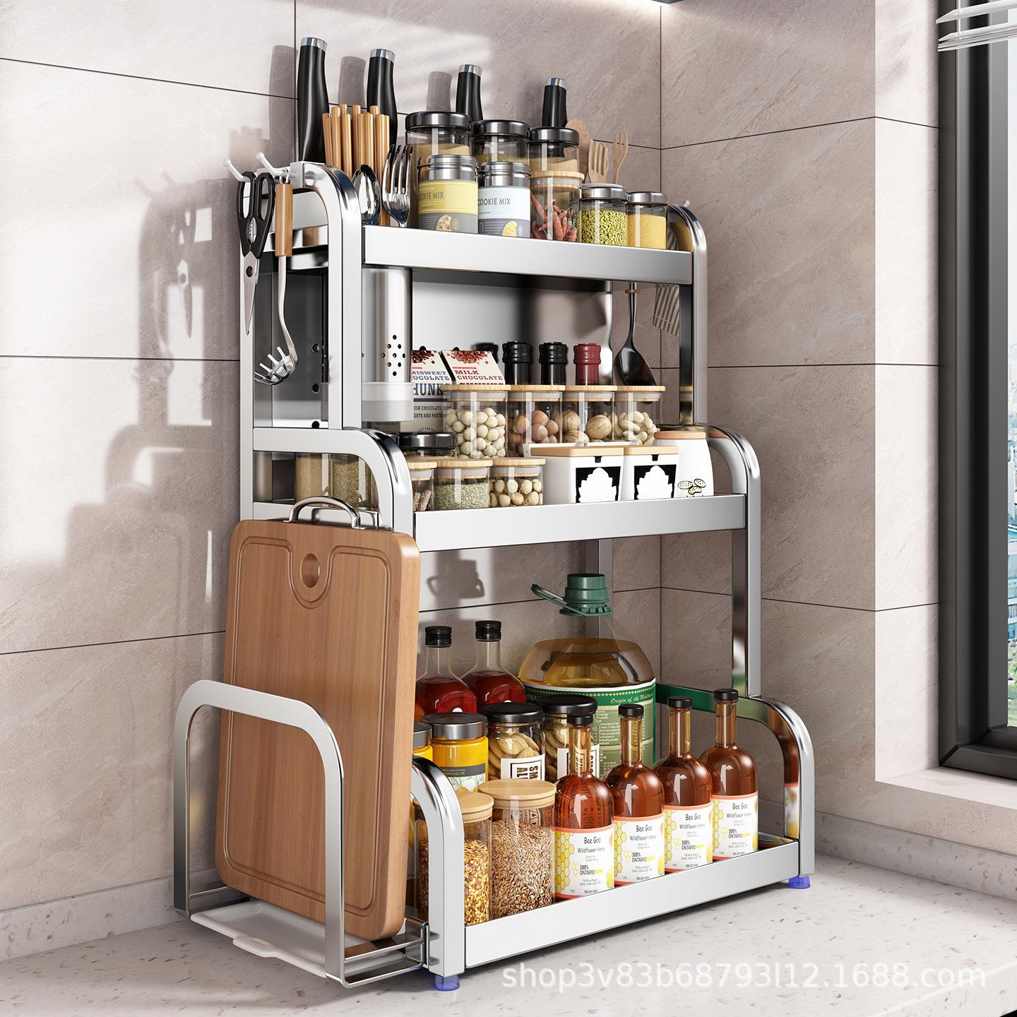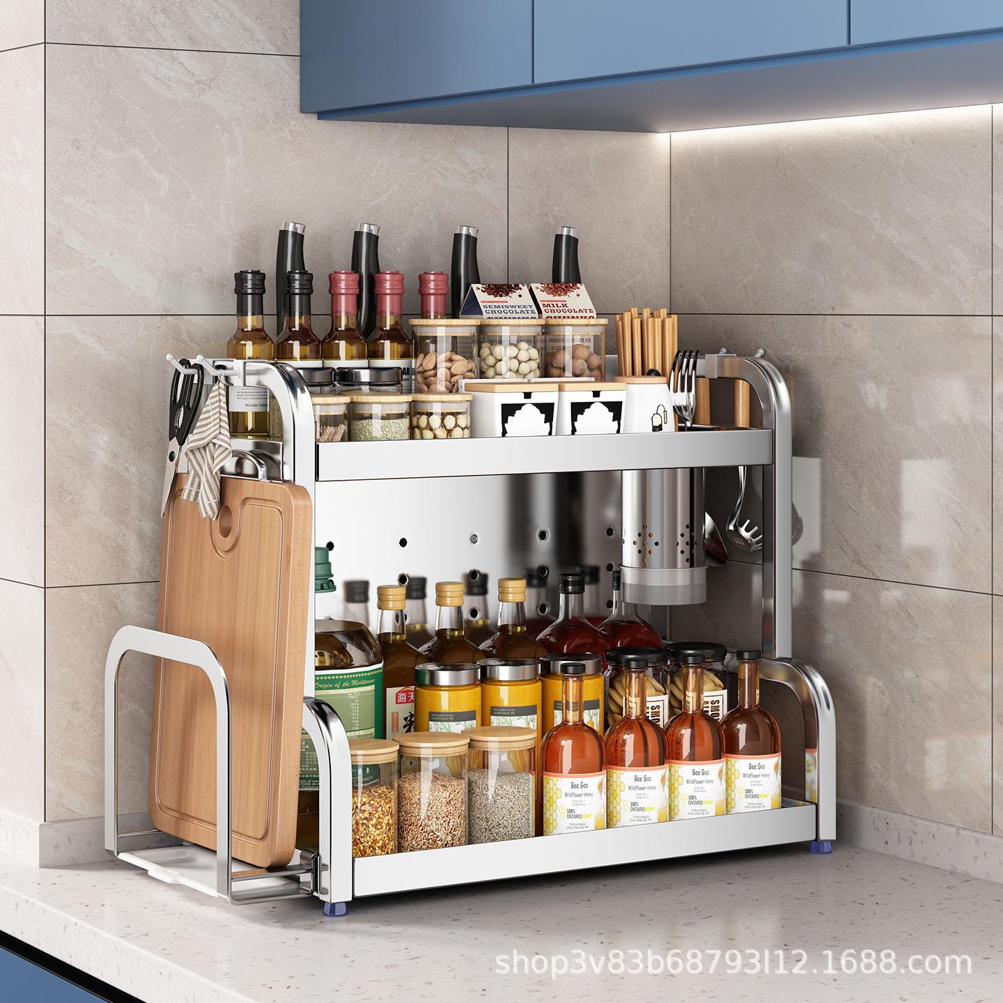 厨房置物架不锈钢台面多层调料收纳架放调味品瓶罐筷子收纳柜