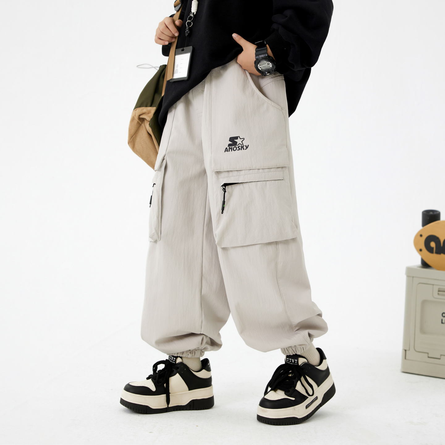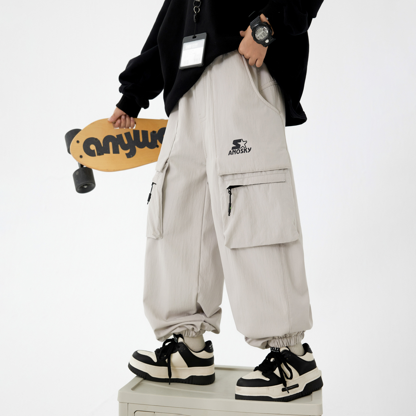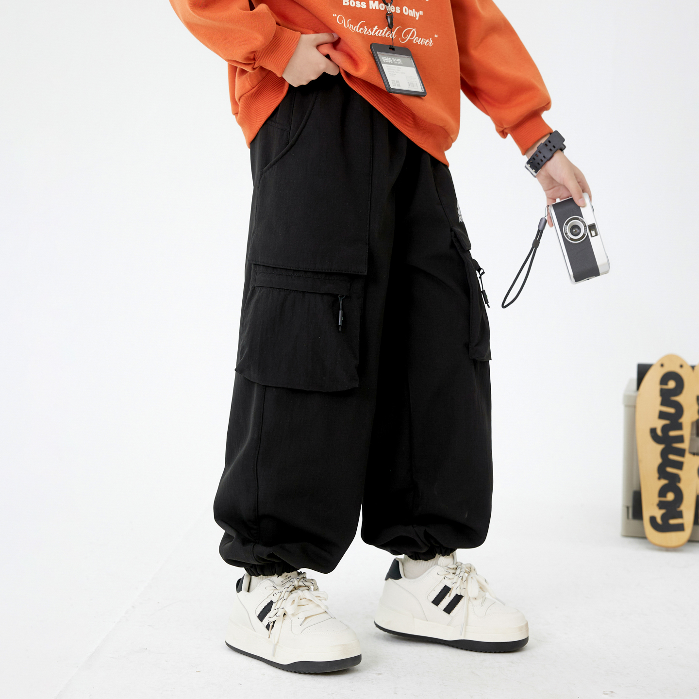 儿童男孩防风加厚直筒裤 男童秋冬季 2025新款 裤 子 黑色加绒冲锋工装