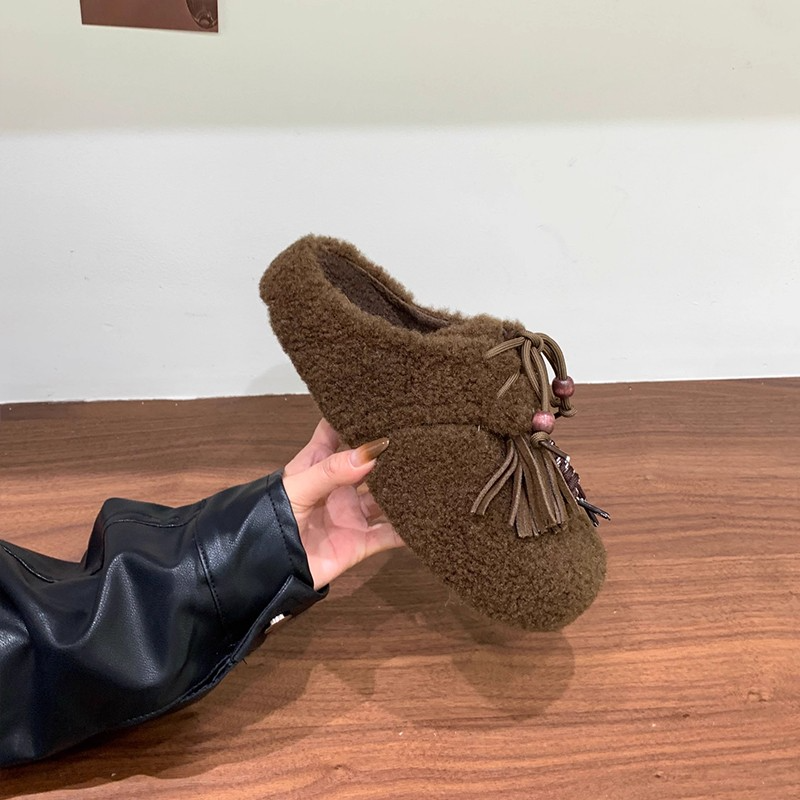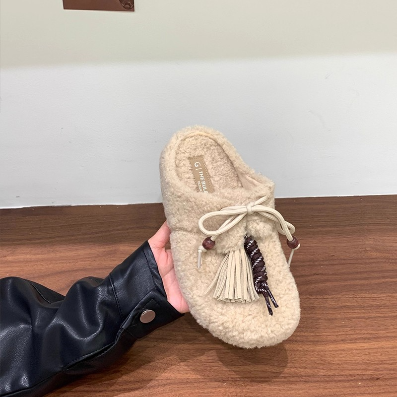 网红包头毛毛拖鞋 羊羔毛厚底加绒保暖懒人半拖 女外穿2025秋冬新款