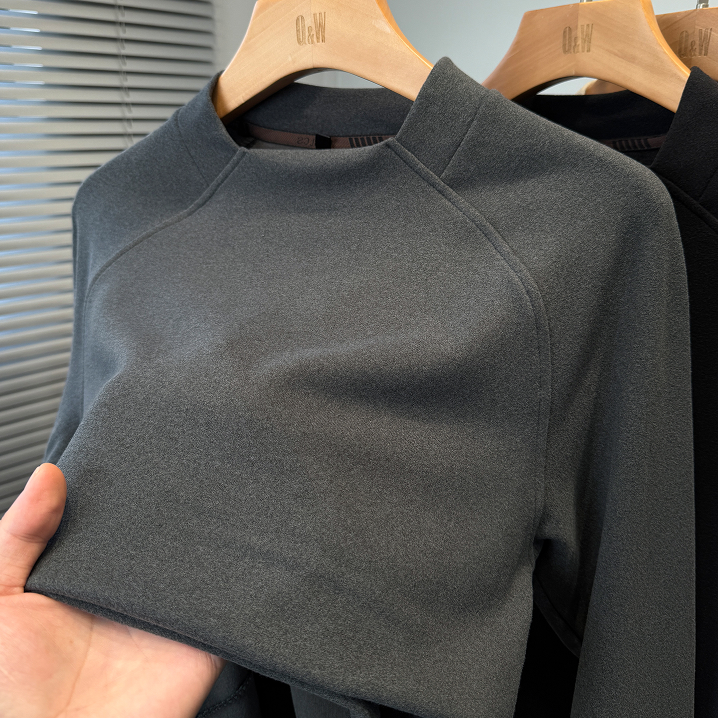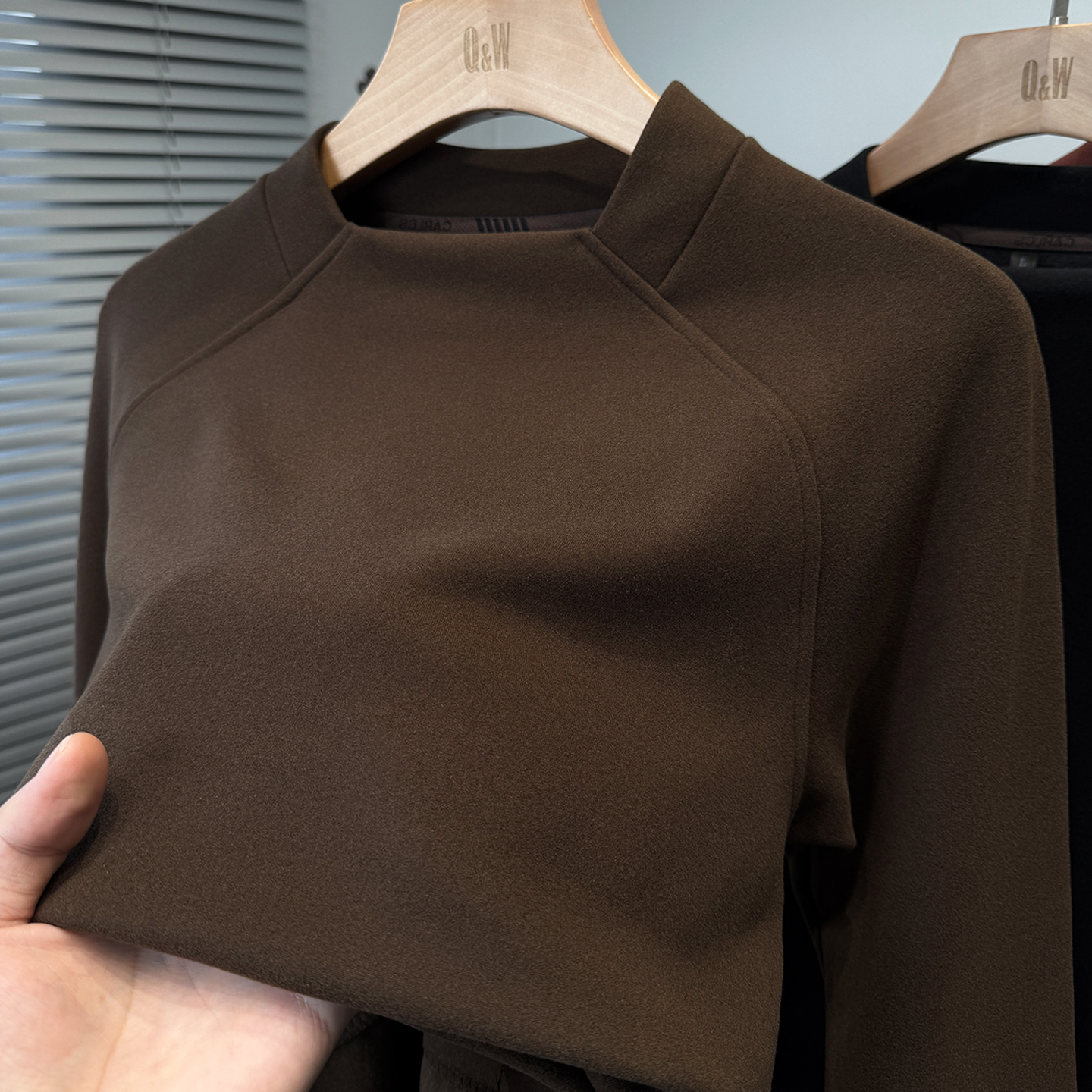 休闲上衣 内搭中青年冬季 一字半高领打底衫 男磨毛德荣绒t恤男长袖