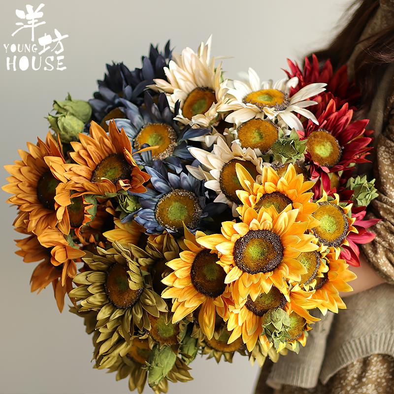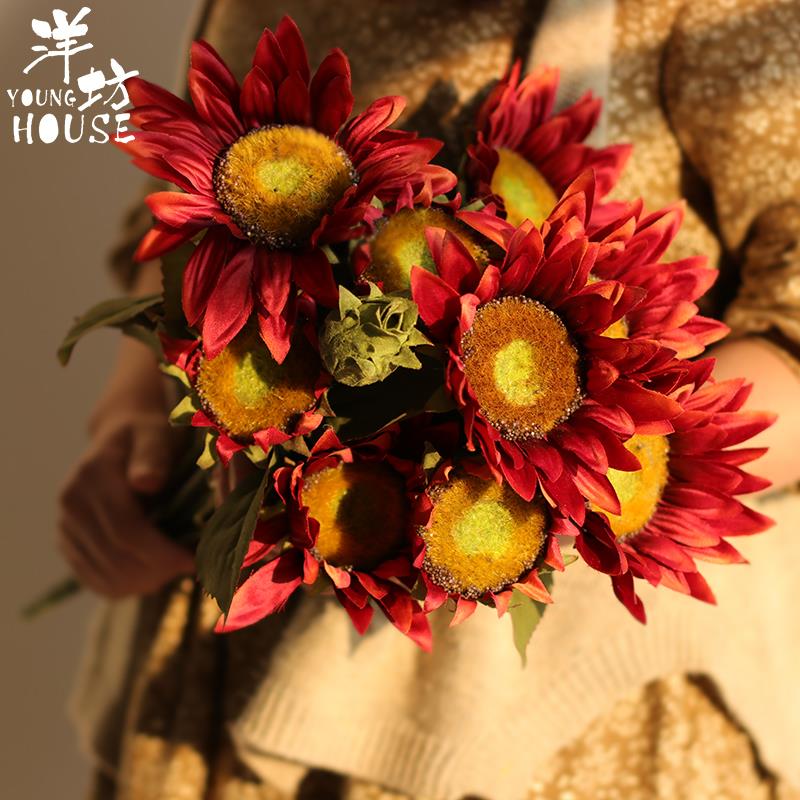洋坊油画向日葵仿真花13头假花太阳花束干花客厅摆件绢布家居装 饰