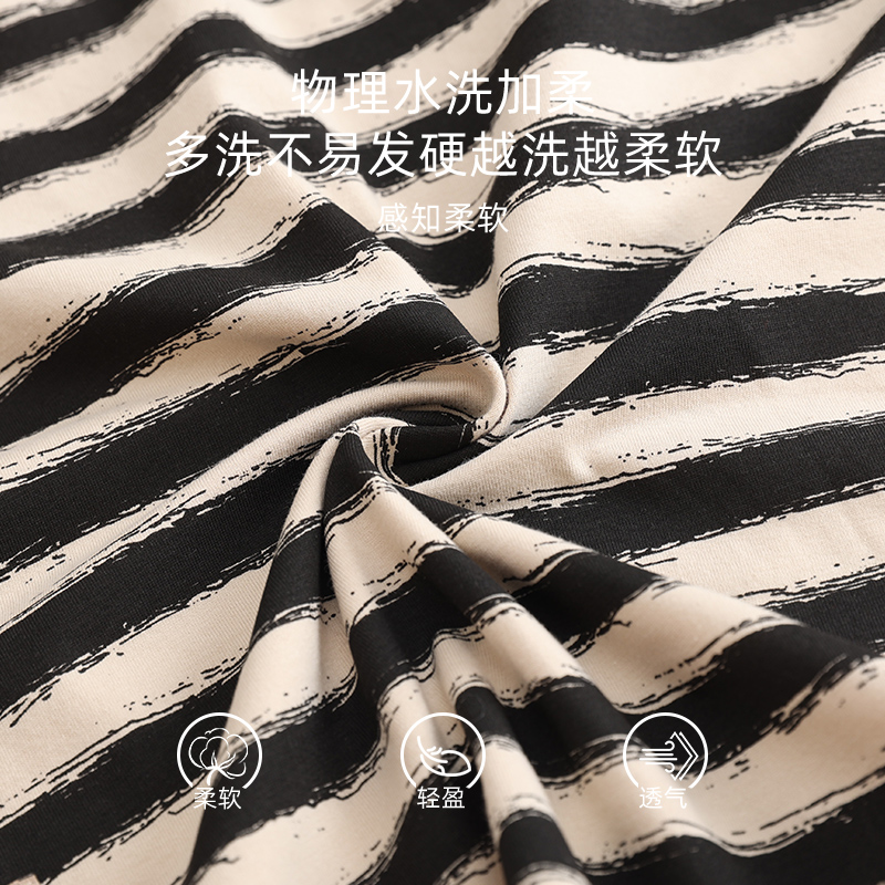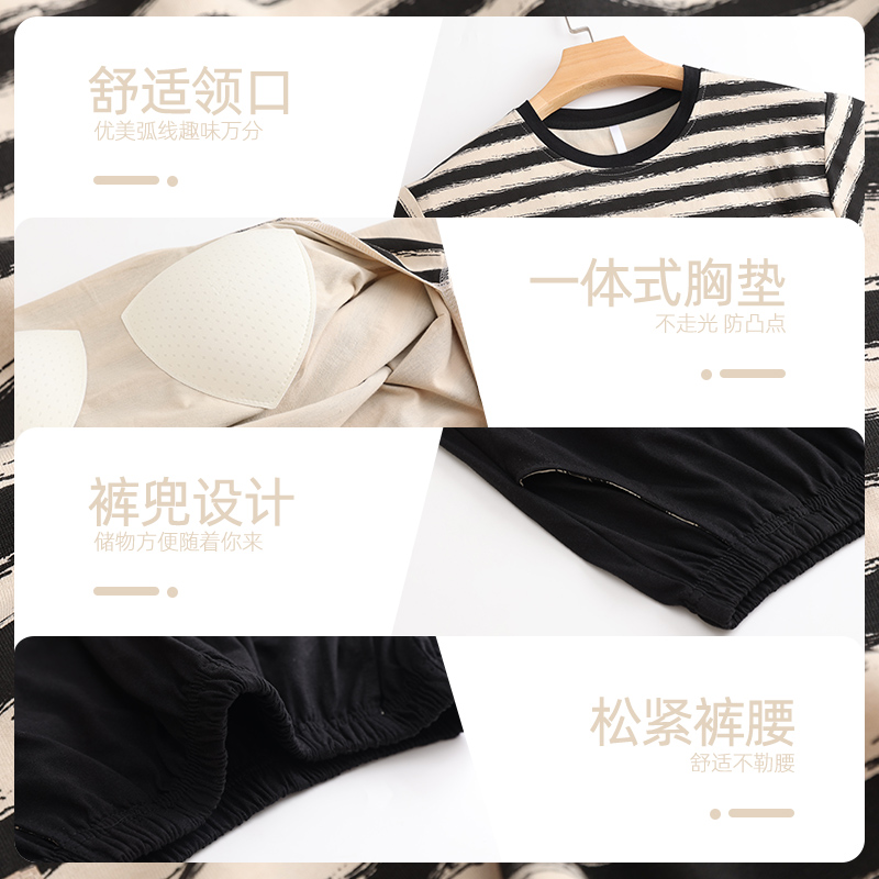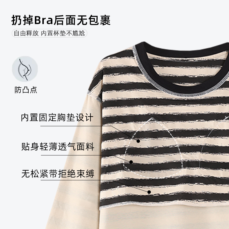 可外穿2025新 高级感条纹家居服套装 带胸垫纯棉女士睡衣春秋款 长袖