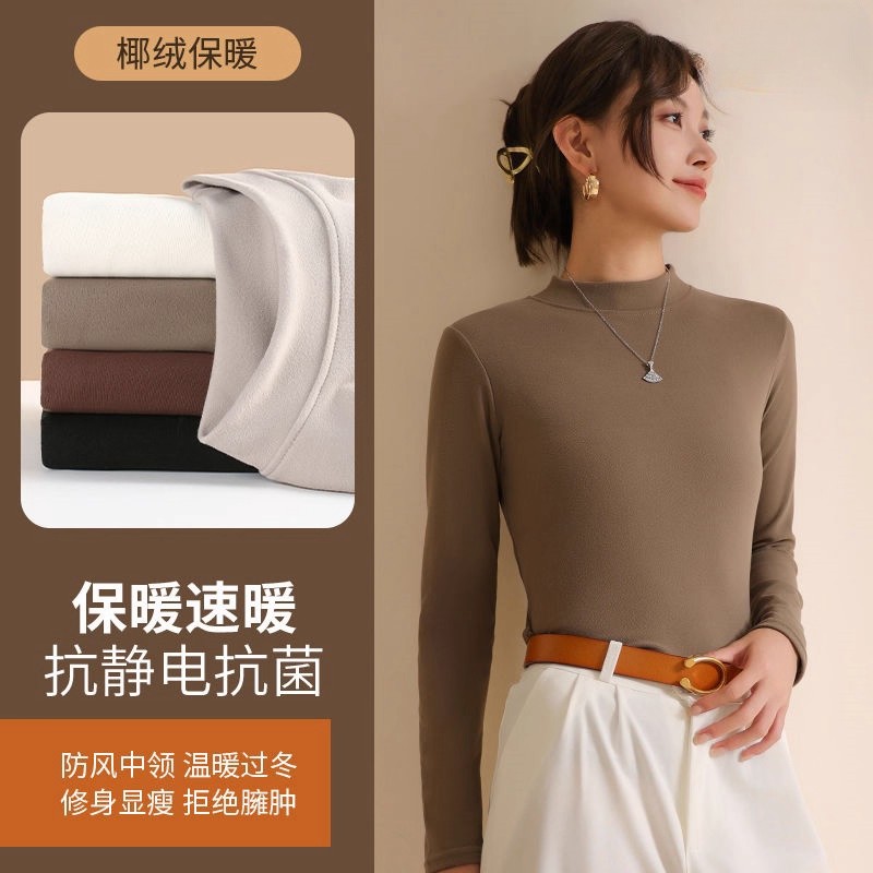三叶蕉椰绒半高领打底衫 高级感外穿内搭轻盈保暖秋衣磨毛 女秋冬季