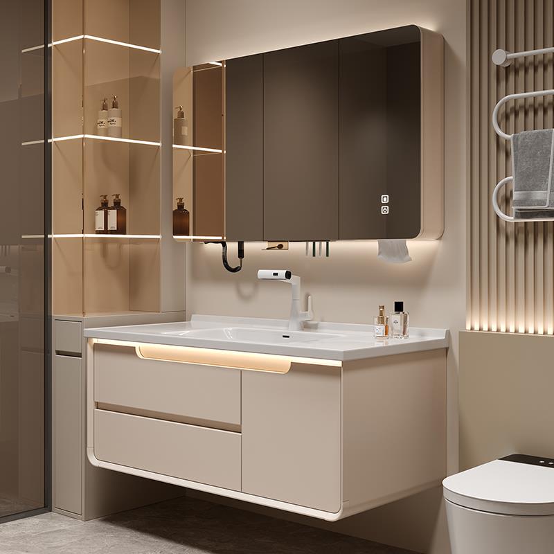 奶油风陶瓷一体盆浴室柜卫生间洗手盆洗脸盆柜组合洗漱台盆卫浴柜