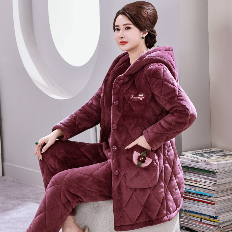 家居服春秋新款 加厚法兰绒加绒套装 珊瑚绒睡衣女秋冬季 2025年冬款