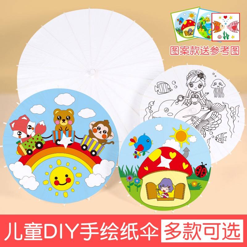 儿童纸伞diy手工绘画伞幼儿园空白彩绘涂鸦装 饰古风道具小油纸伞
