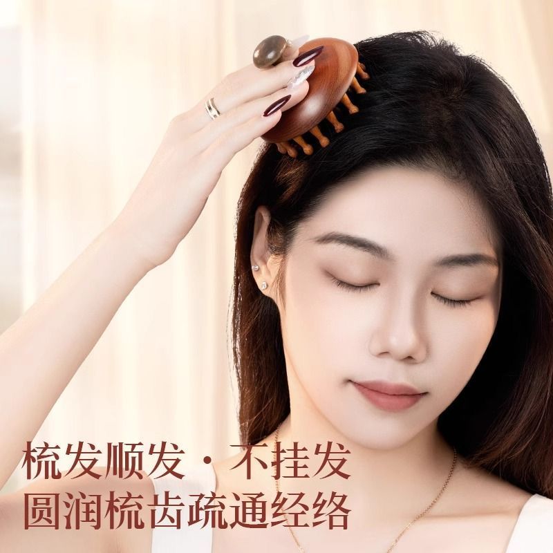 高端檀木圆盘梳头皮按摩梳子头部头疗经络梳疏通神器木梳全身通用