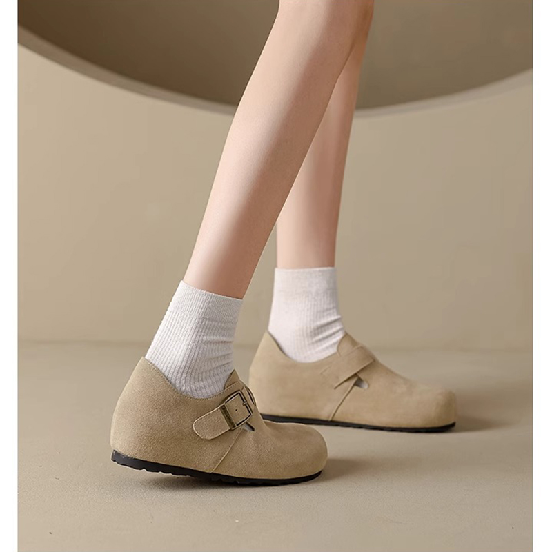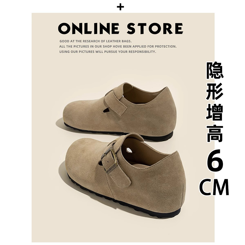 一脚蹬复古博肯单鞋 新款 豆豆乐福 女2025秋季 厚底内增高6cm勃肯鞋