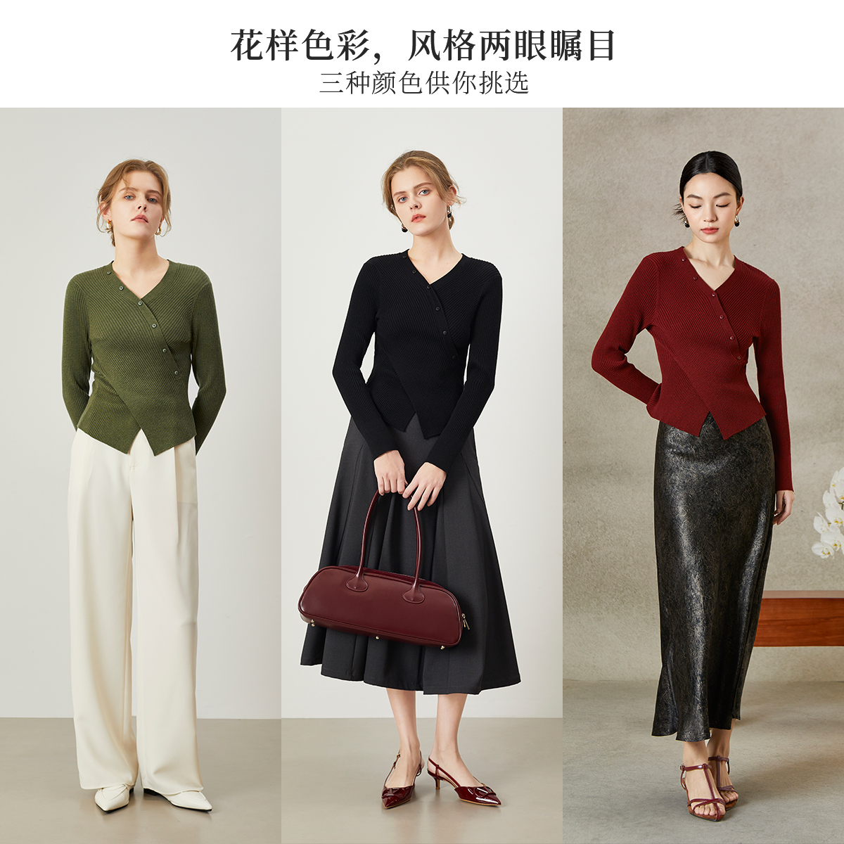 圆领宽松软糯慵懒风上衣女装 贝壳纽扣开衫 冬季 三福毛衣女2025新款