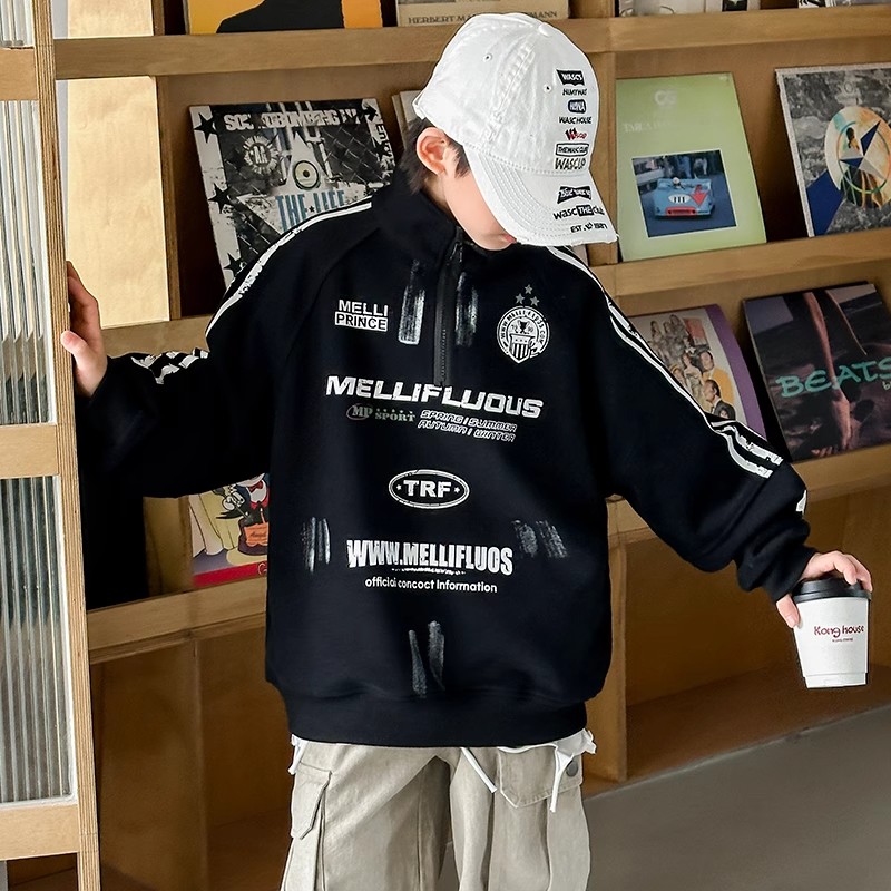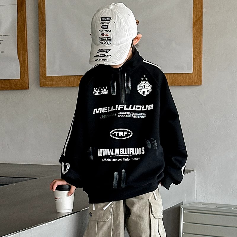 上衣儿童痞帅打底衫 薄款 黑色半高领 2025新款 男童拉链卫衣春秋季
