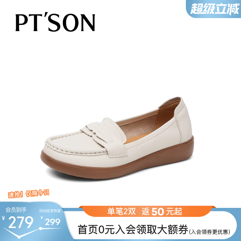 轻便舒软妈妈鞋 真皮软底不累脚单鞋 子 女2025新款 百田森圆头乐福鞋