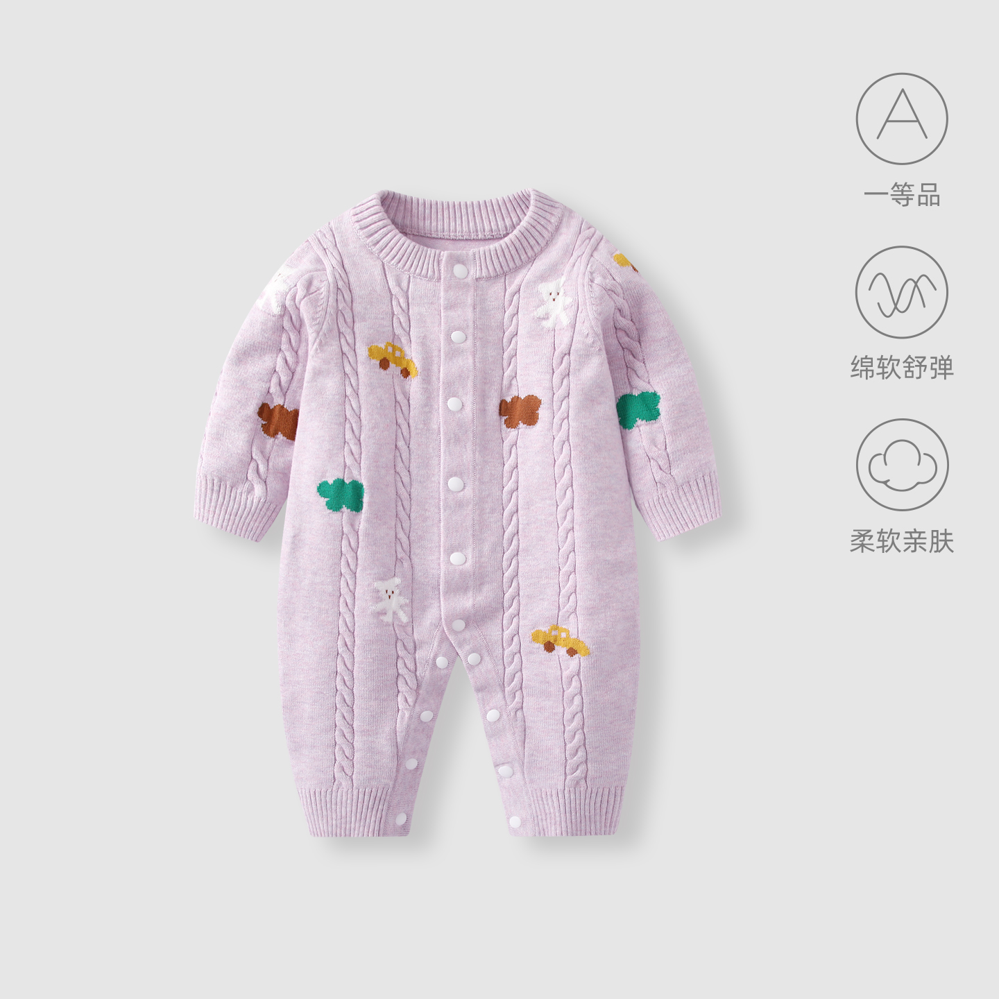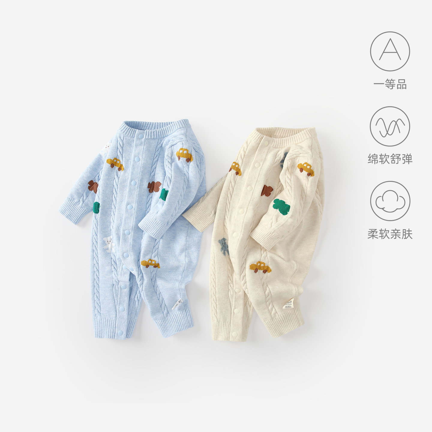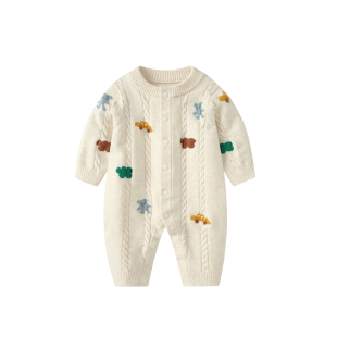 婴儿连体衣秋装 衣服男女宝宝洋气秋冬爬爬服 毛衣小月龄卡通针织衫