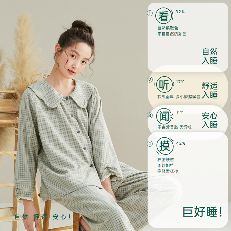 巨柔软 男女家居服套装 纯棉睡衣情侣春秋款 宽松大码 长袖 安之伴