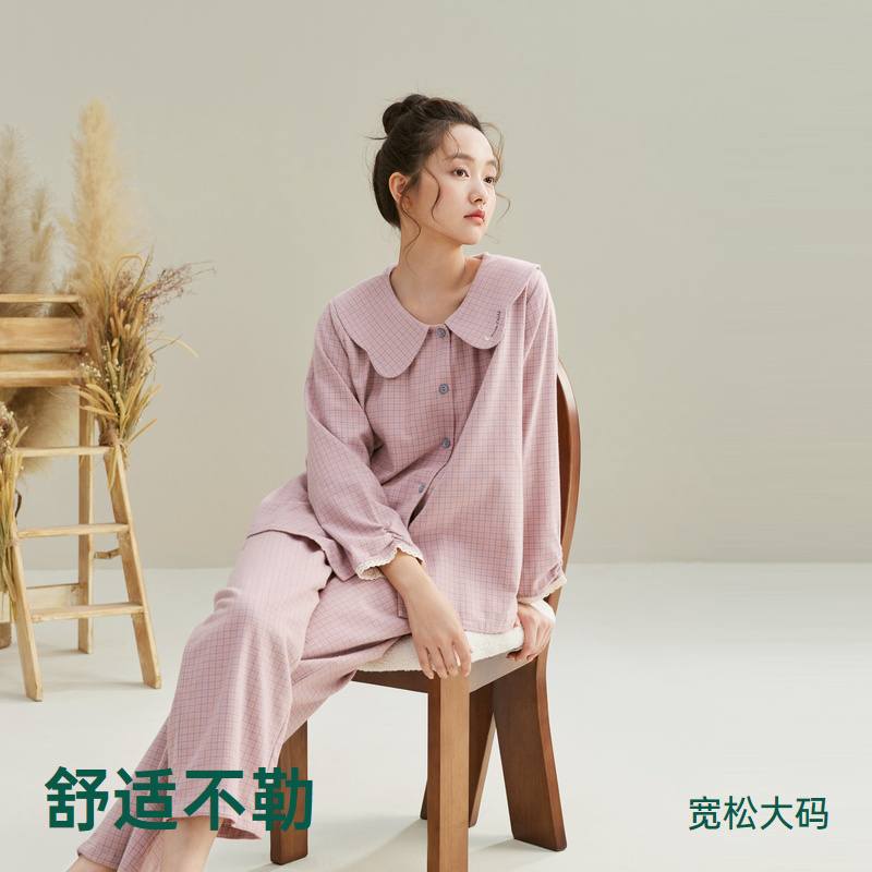 长袖 睡衣女款 纯棉休闲韩版 可外穿秋季 2025年新款 家居服套装 春秋款