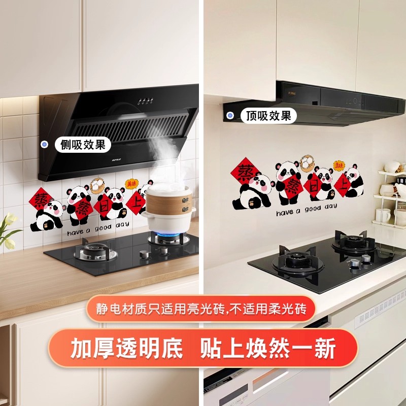 厨房防油贴纸静电贴耐高温防水免胶墙贴画瓷砖油烟机灶台墙面墙纸