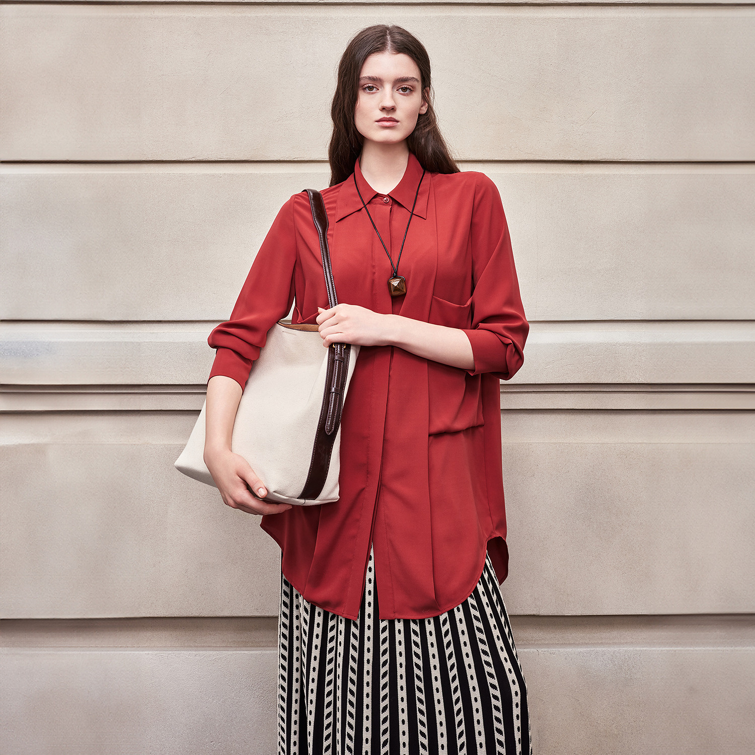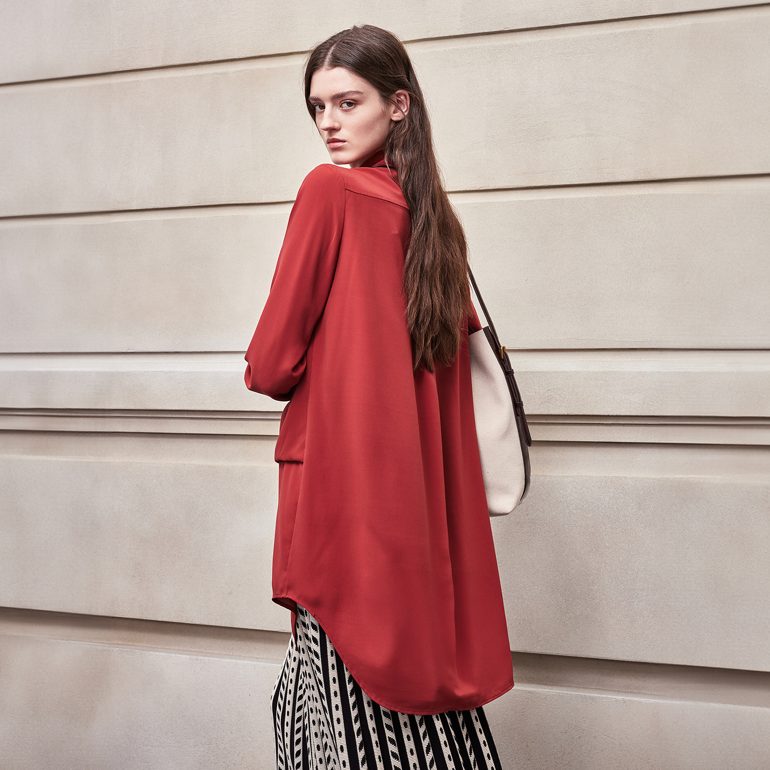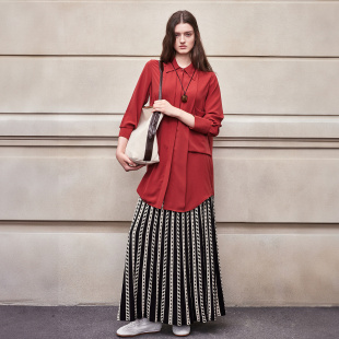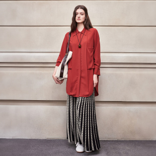 女上衣衬衫 BCBG25早秋新款 饰口袋长款 流行简约休闲柔软垂坠装 时尚