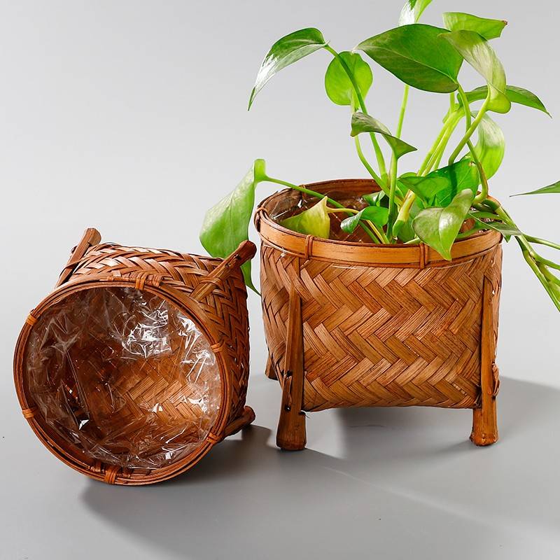日式 竹编桌面花盆套竹制品绿萝花篮装 饰花器收纳篮手工艺术中式