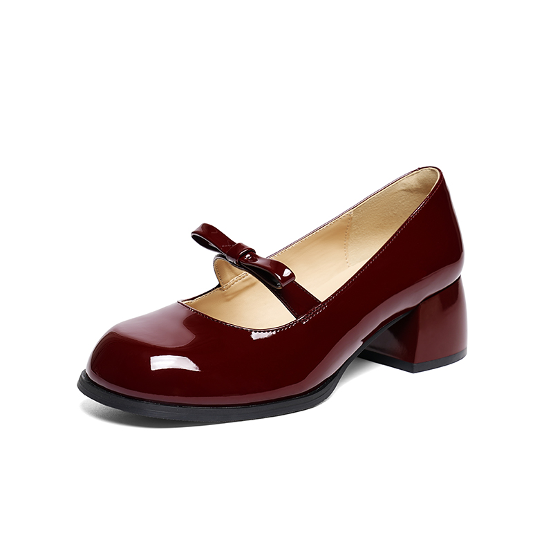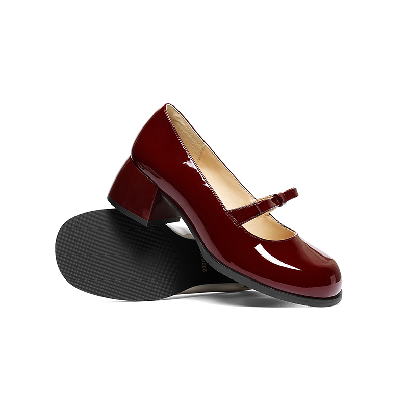 浅口红色单鞋 粗高跟婚鞋 子D7L1DAQ5 女2025新款 百丽樱桃玛丽珍鞋