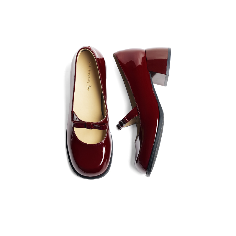 红色玛丽珍鞋 法式 百思图莫奈花园25秋新款 女单鞋 乔欣明星同款