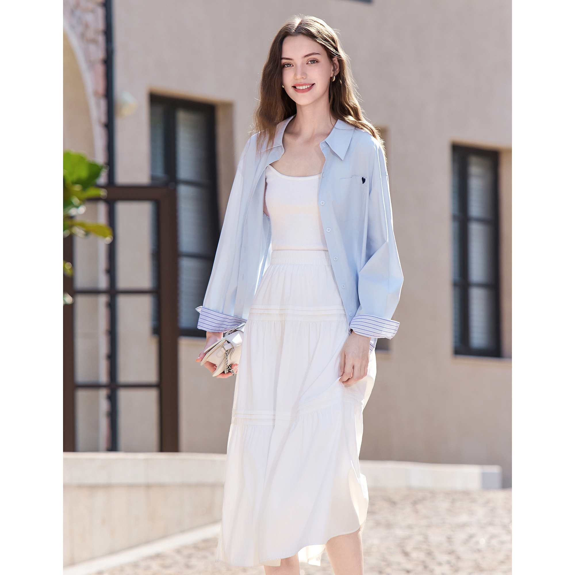 纯棉绣花上衣气质淑女刺绣衬衣 2025新款 初影杏色木耳领衬衫 女长袖