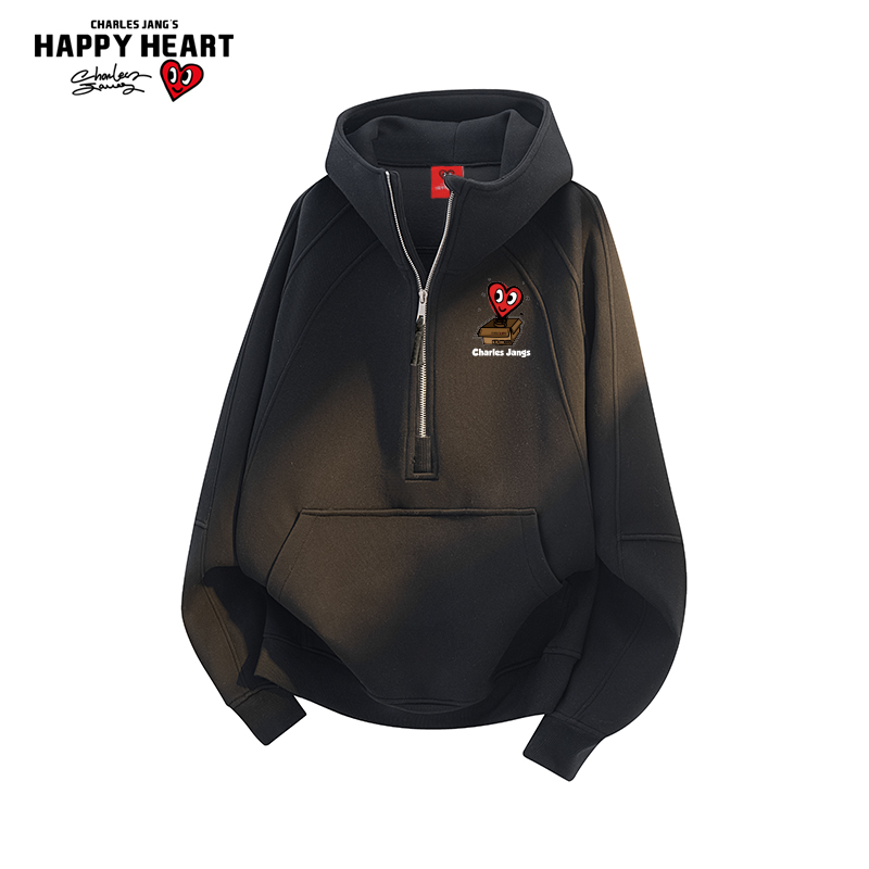 查尔斯桃心硬挺半拉链立领连帽卫衣男春秋季 宽松休闲情侣上衣外套
