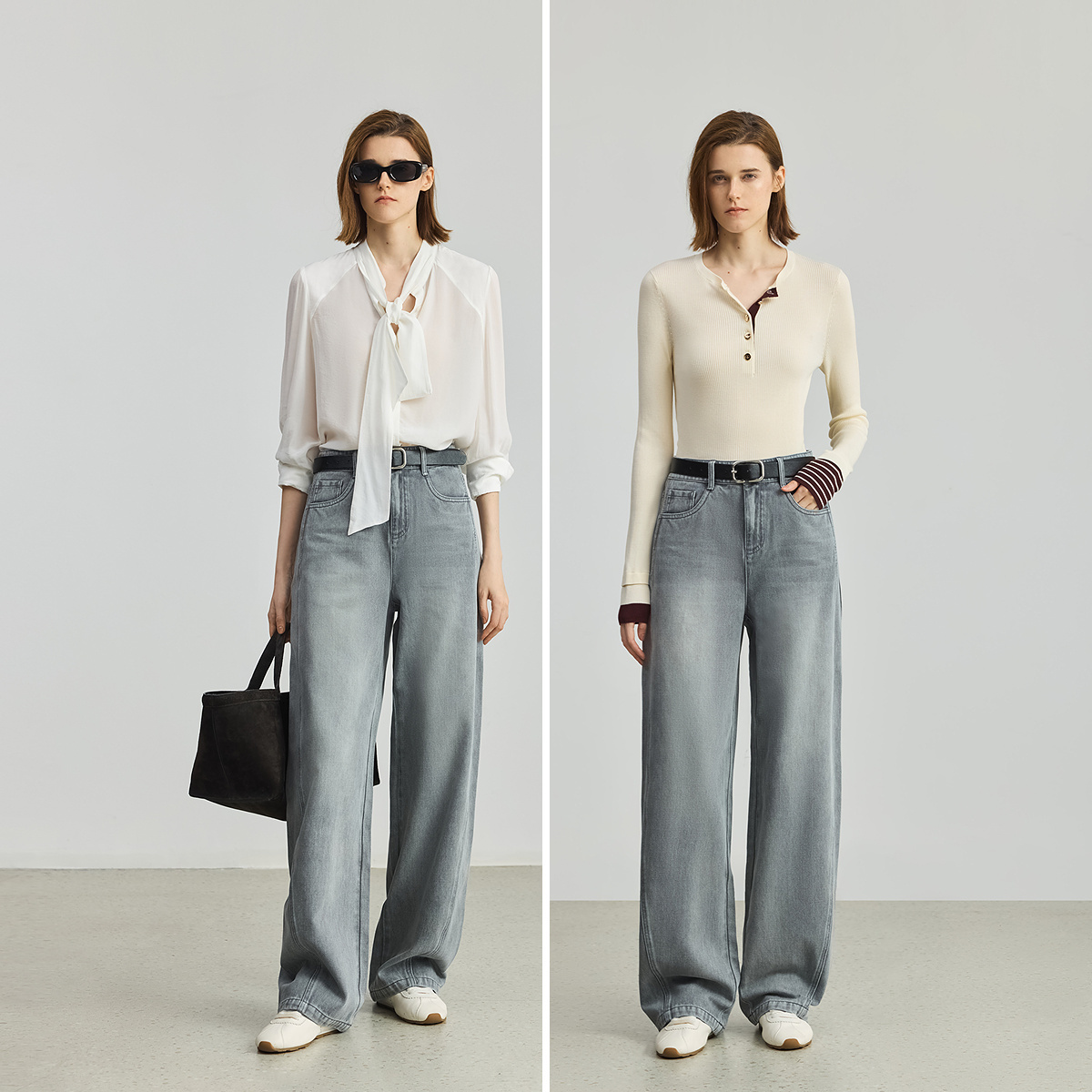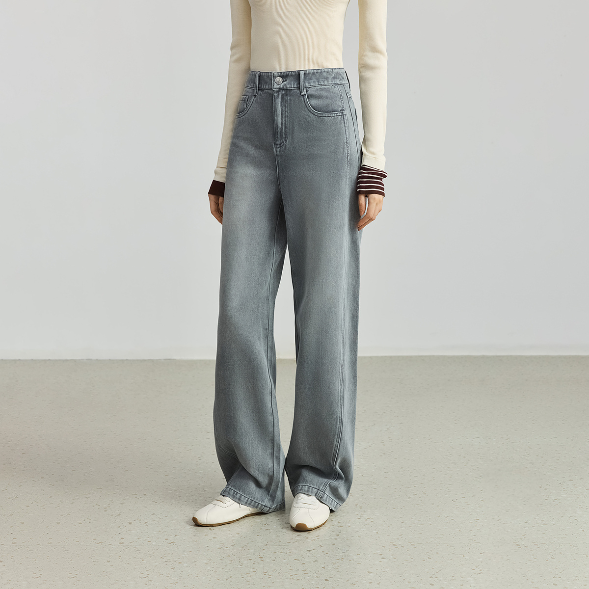 牛仔裤 含莱赛尔复古休闲通勤灰色直筒阔腿裤 女装 LILY2025秋新款