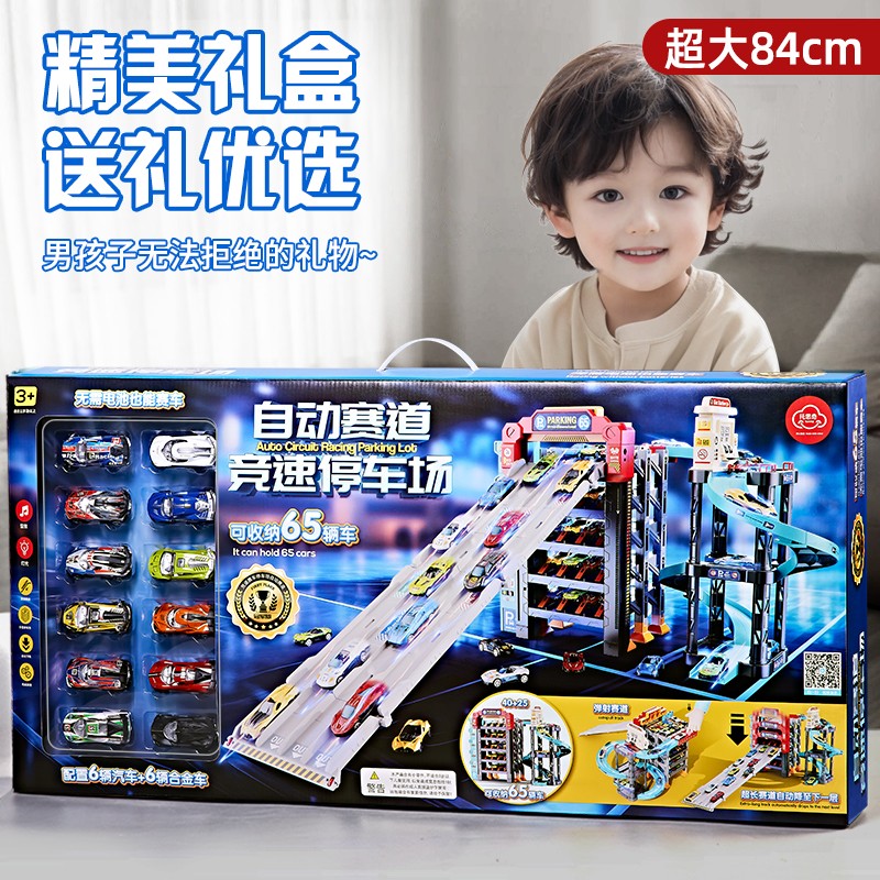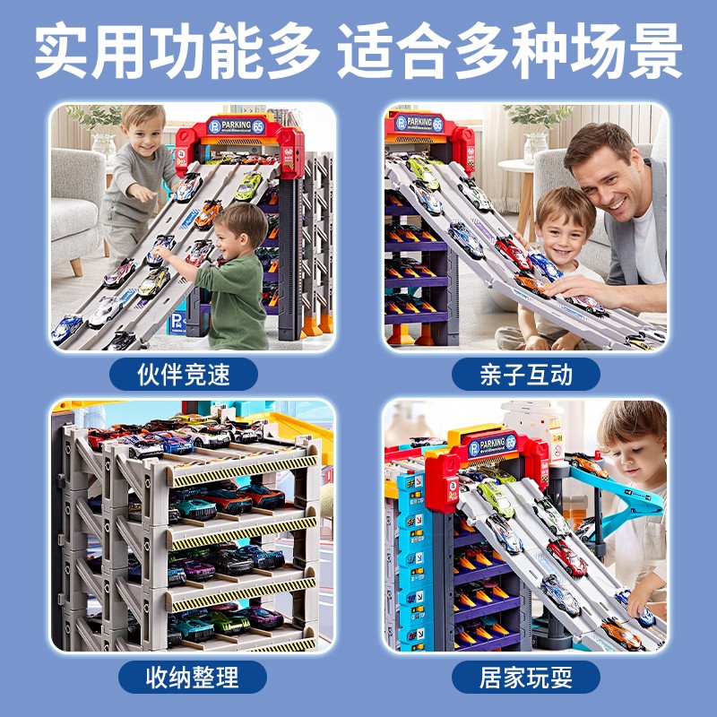 儿童轨道车停车场大楼小汽车5合金玩具车7男孩益智3到6岁生日礼物
