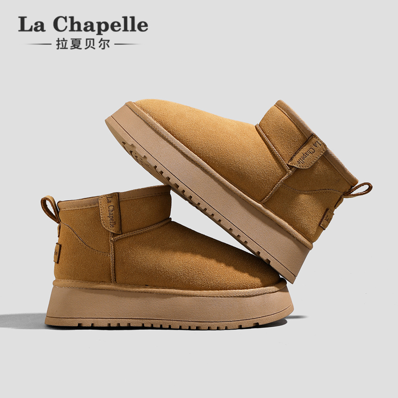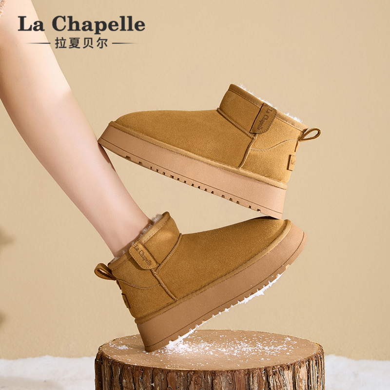 加绒加厚皮毛一体保暖面包棉鞋 拉夏贝尔厚底雪地靴女2025新款 冬季