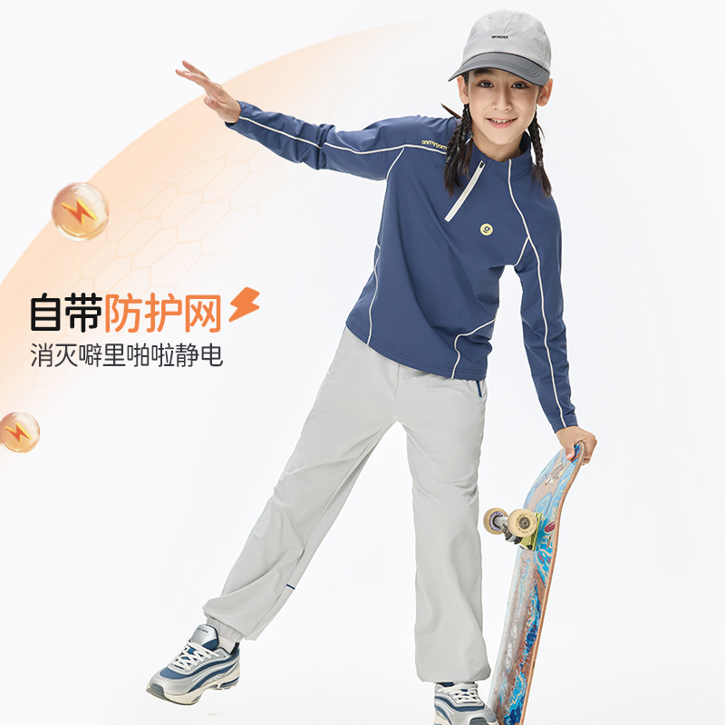 新款 onmygame T恤25秋季 儿童长袖 男女童半拉领打底 绒感速干衣